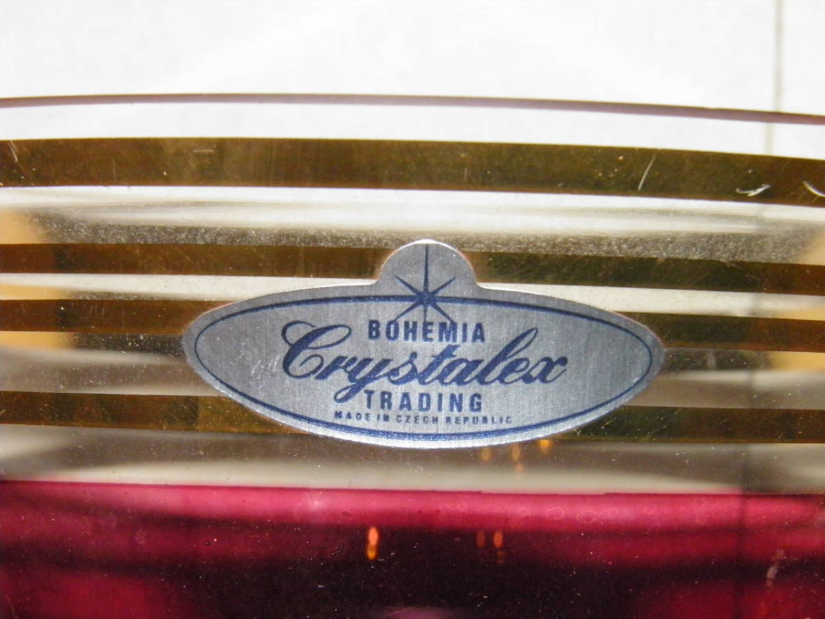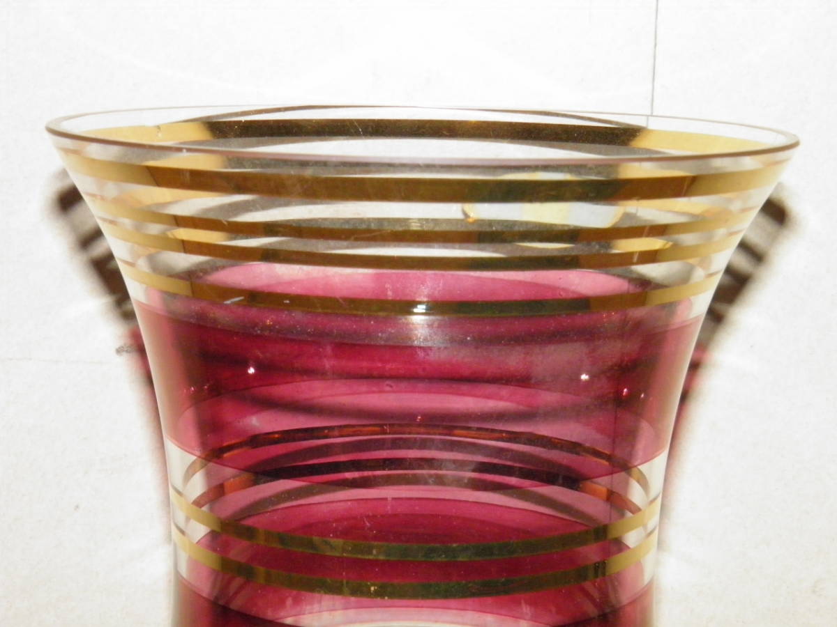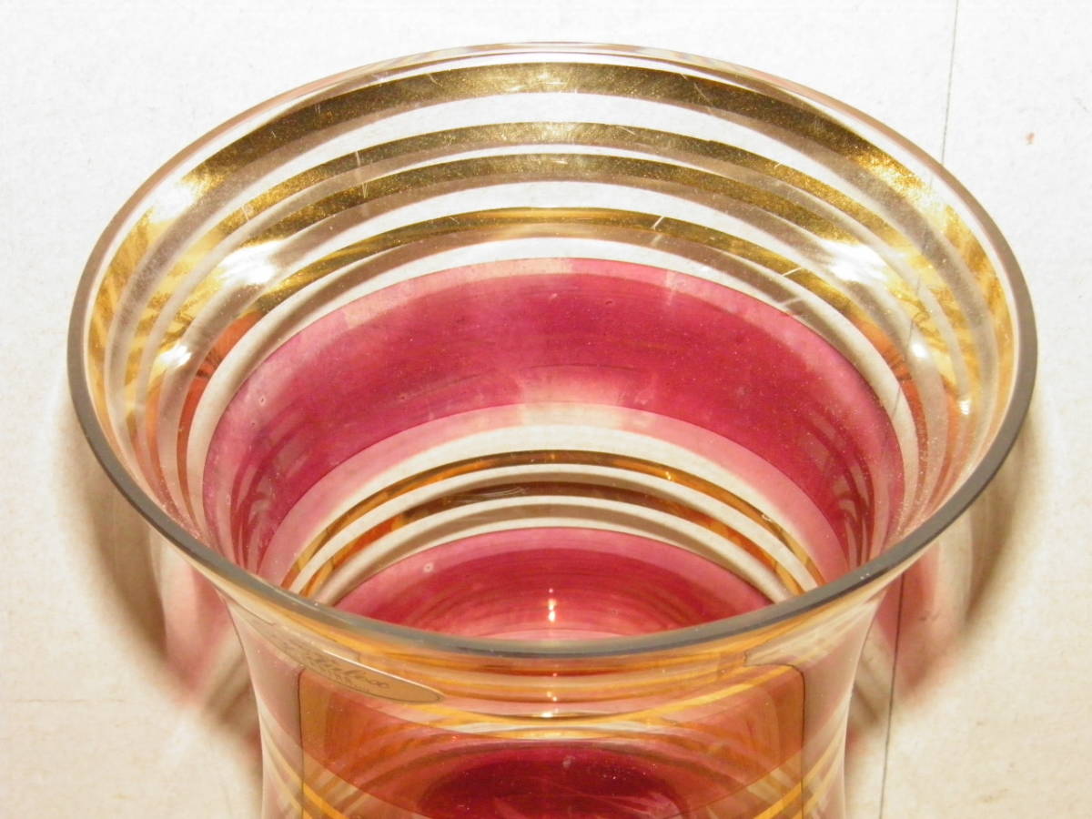 ボヘミアガラス 金彩 花瓶 高さ26cm Crystalex チェコ製 ワインレッド 切子 花柄 グラヴィールカット