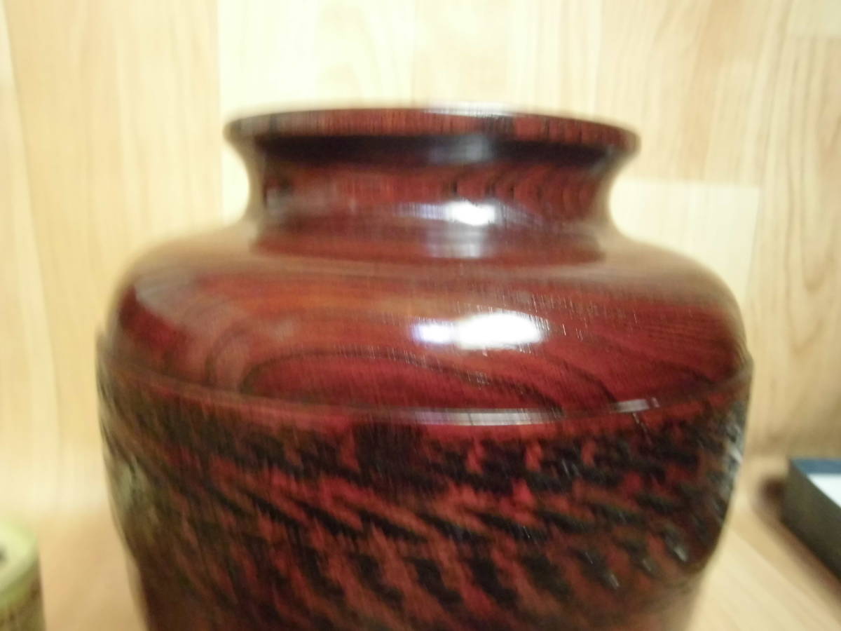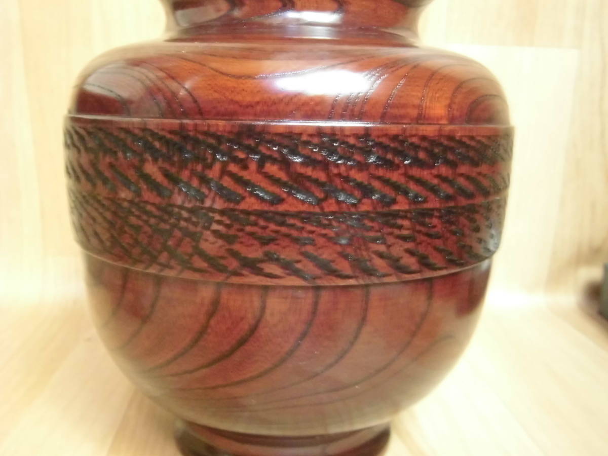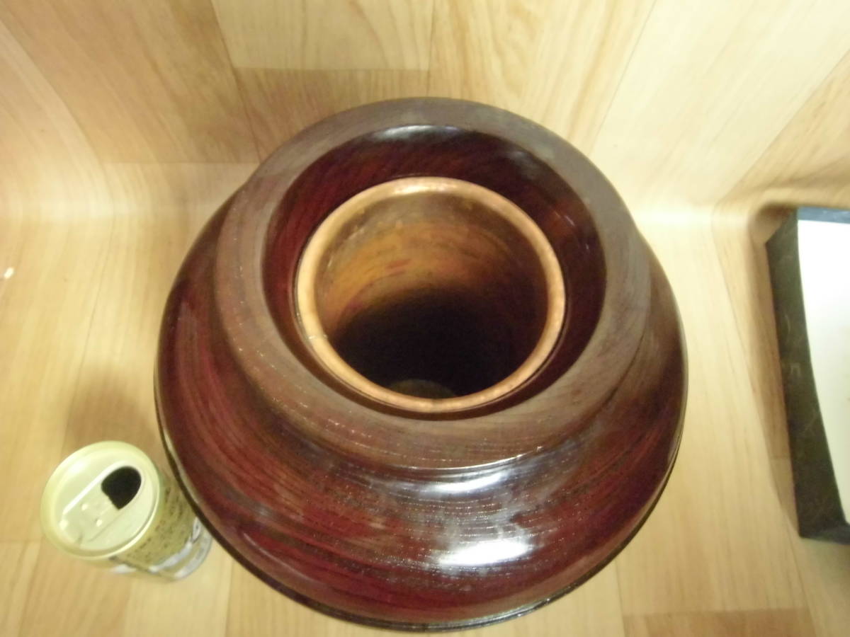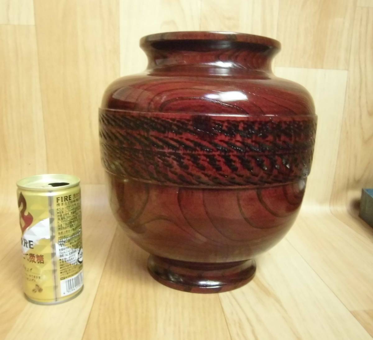 拭き漆塗りで仕上げられた美しい木目のくり抜き花瓶です。