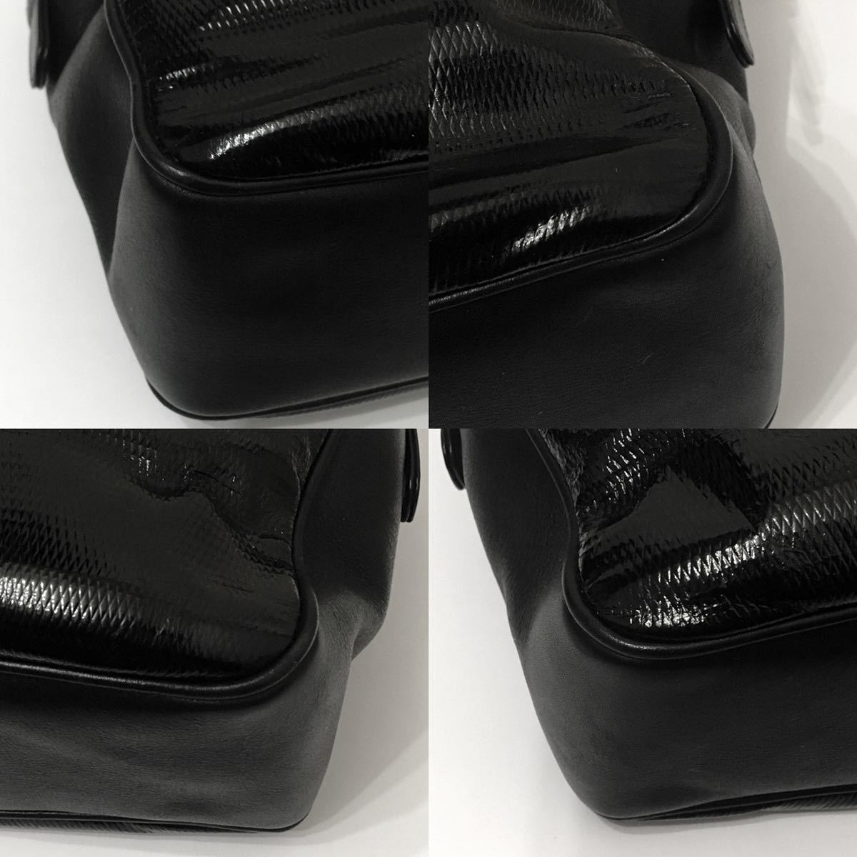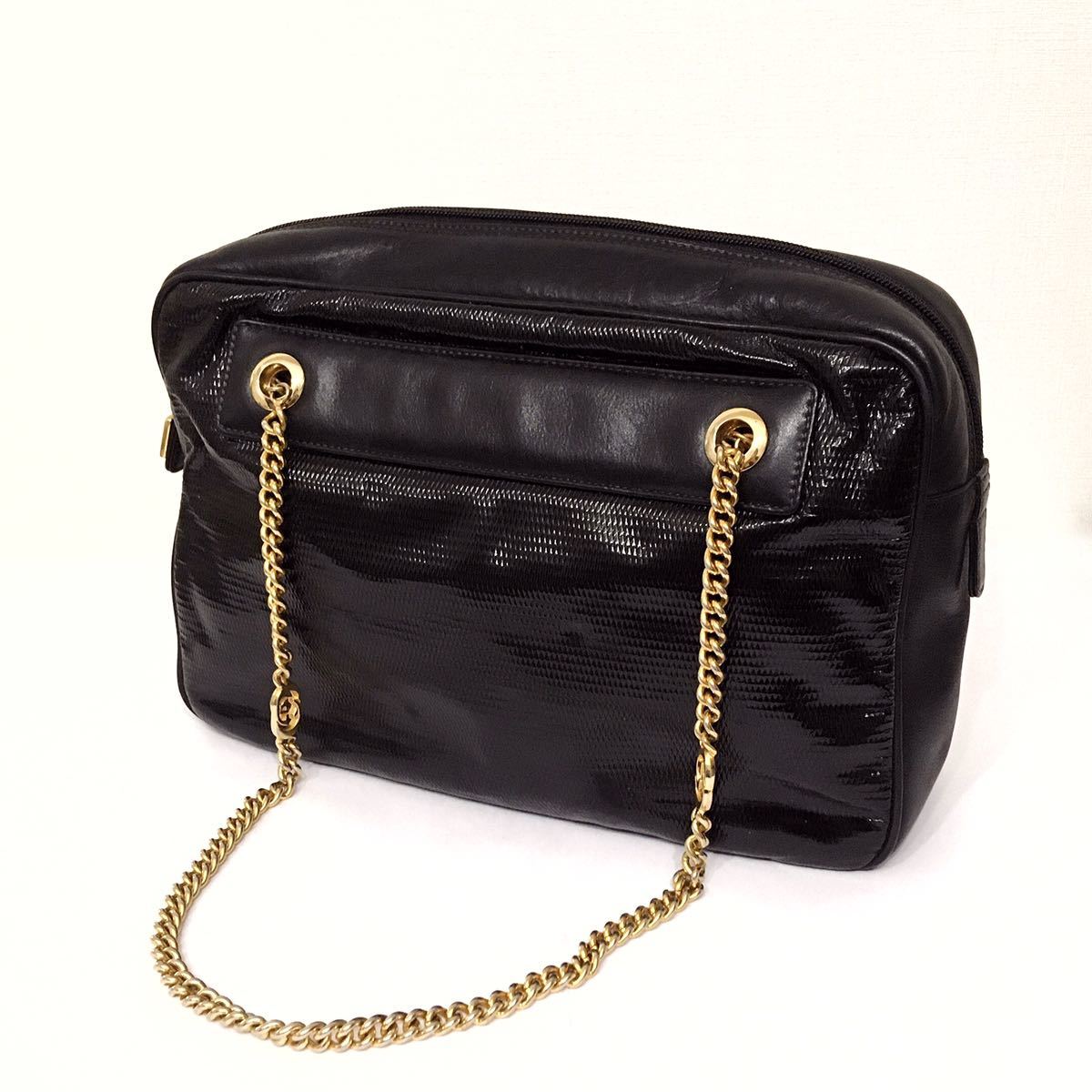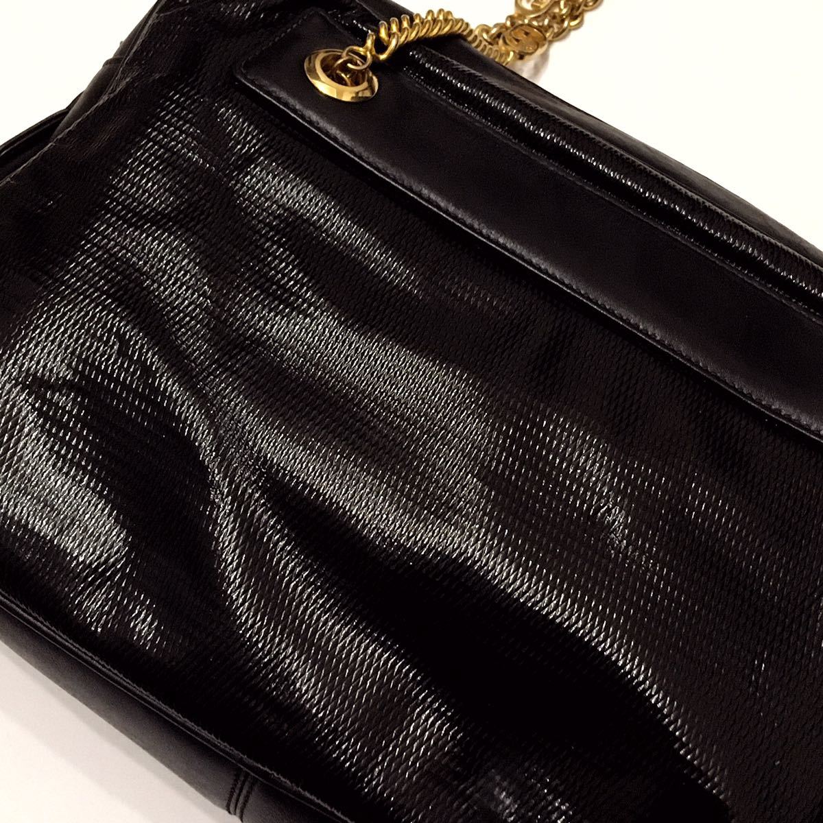 エナメル × レザー チェーン ショルダー バッグ