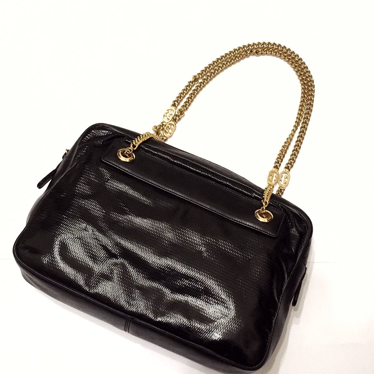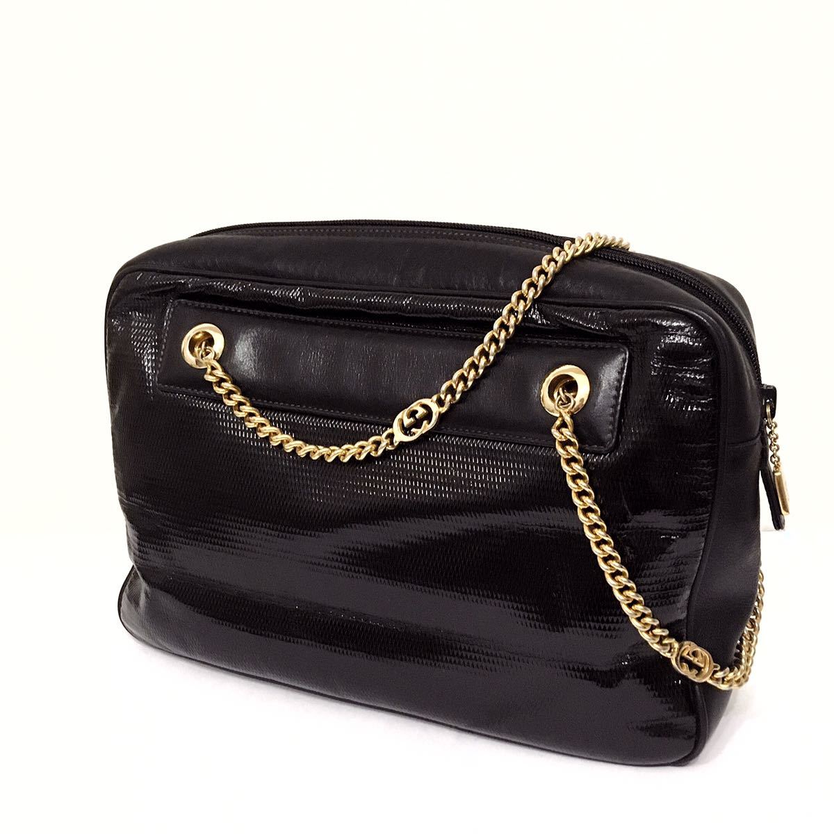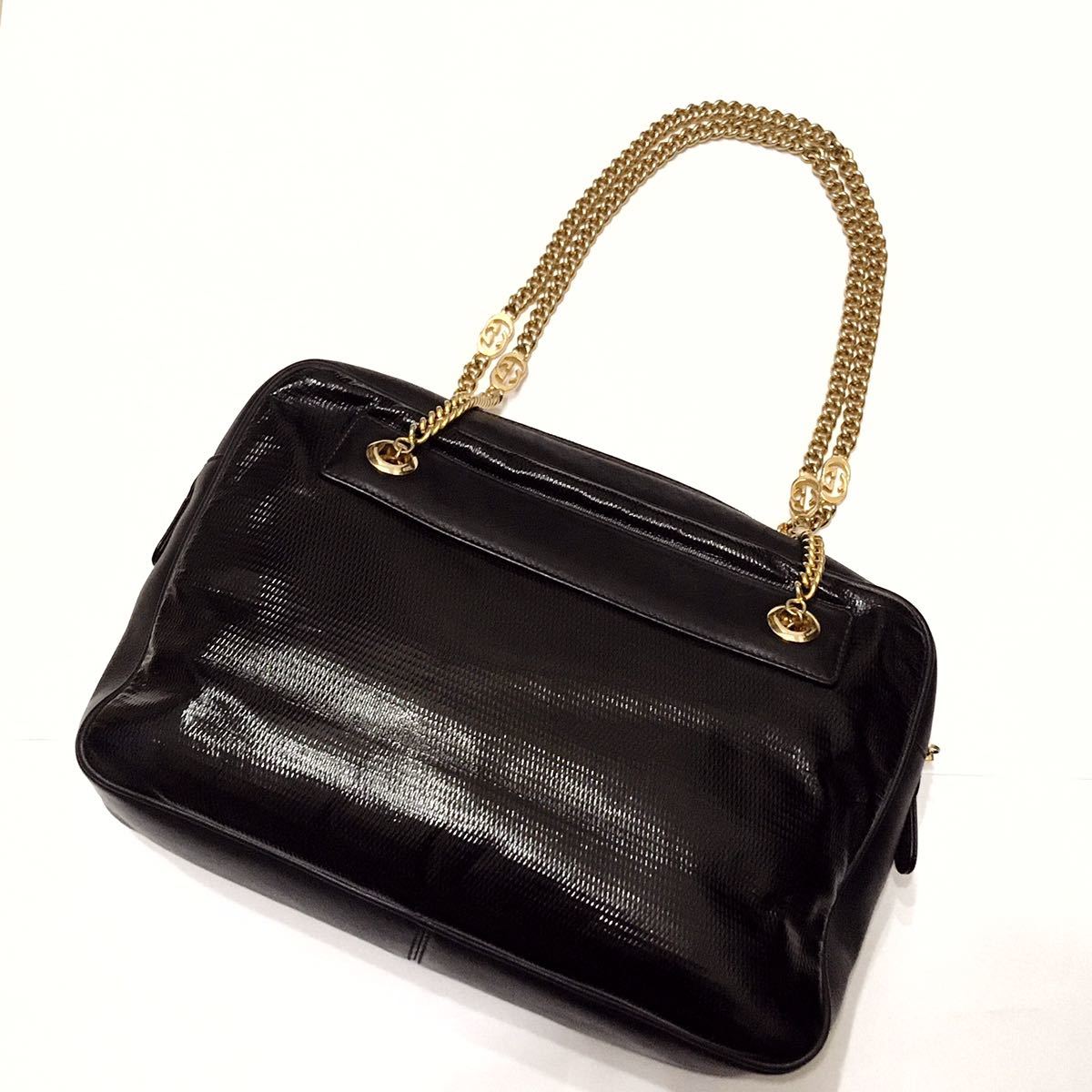 エナメル × レザー チェーン ショルダー バッグ