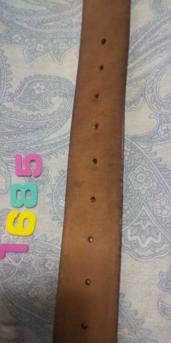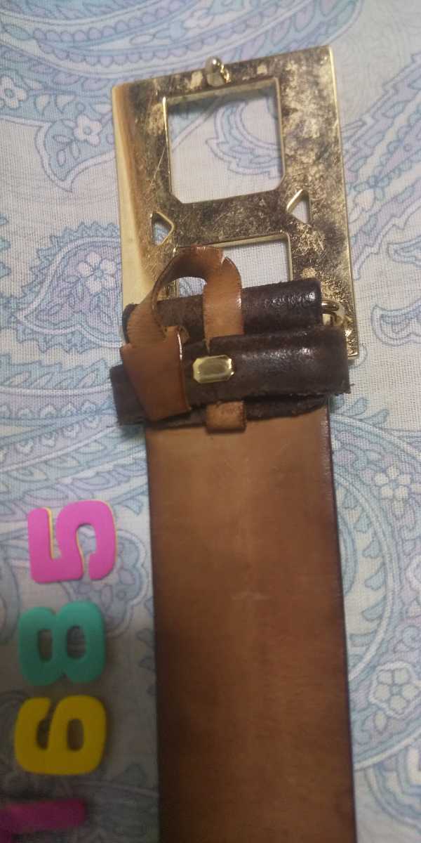 《寸法》ウエスト最大96cmウエスト最小80cm 9穴ございます。4穴自分で開けております。 バックルの大きさは横6.8cm縱5cmです。 ベルト幅 3.9 cm