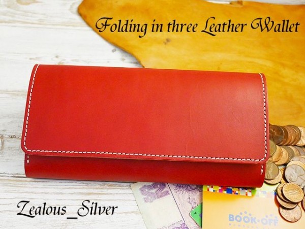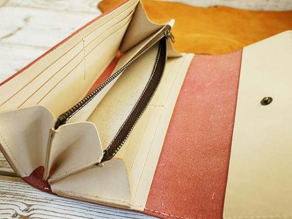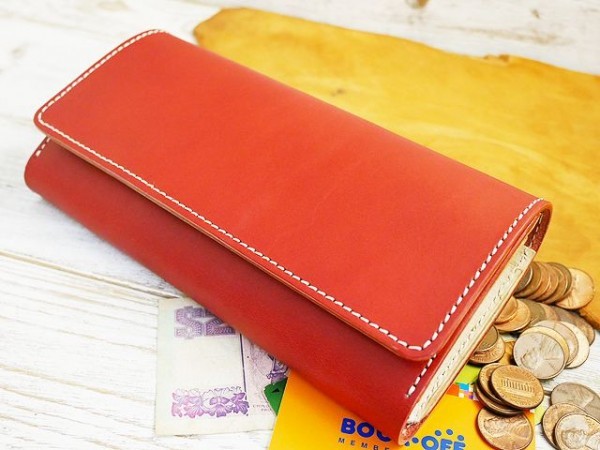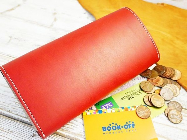 送料無料 コインが大きく開く!! 3つ折りロングウォレット 本ヌメ革 ハンドメイド 姫路レザー lwt36 レッド