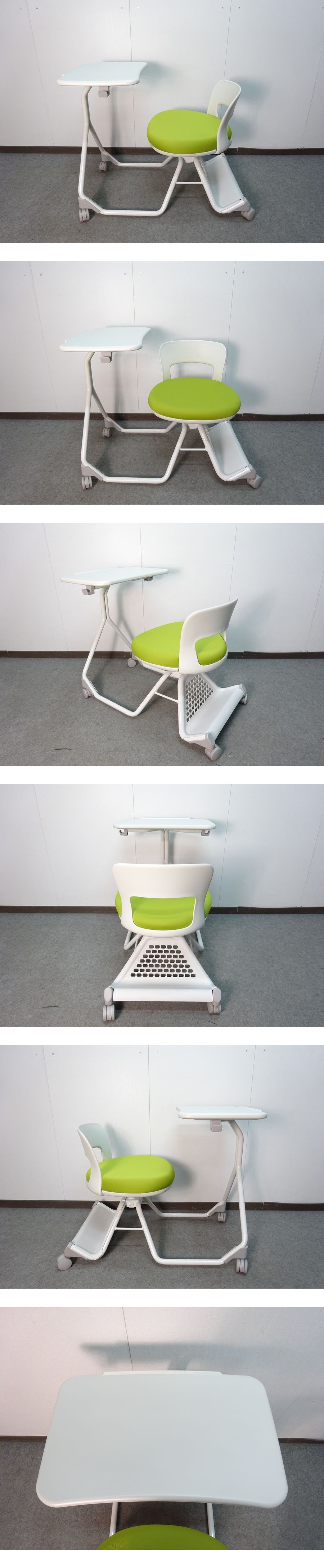 ・メーカー:イトーキ ・型番:SCR-123GBW9W8S4 ・サイズ:W868×D527×H700(SH420) 単位(mm) ・本体カラー:ホワイト ・シートカラー:モスグリーン ・価格:¥74,520 オフィスファニチャーブランド イトーキのスクラムシリーズです。「レクチャー・演習・プレゼン」といった講義スタイルに適した教育施設用家具シリーズ。キャスター付チェアで移動も簡単に行えます。ノートPCも置けるA3サイズの天板付タイプは荷物が落ちにくいエッジ形状を採用しており、安心して作業に取り組めます。グッドデザイン賞を受賞しております。 ■仕様 ・天板:メラミン化粧板 ・エッジ:ウレタン樹脂 ・脚:φ31.8スチールパイプ粉体塗装仕上 ・シェル:ポリプロピレン樹脂 ・座:布地張り ■状態 ・こちらの商品は未使用品です。運搬時の若干のスレはございますが、目立つキズ、汚れなど無く綺麗な状態です。この機会にいかがでしょうか! (※未使用とは…商品を開封し、設置等しましたが一度も使用せず保管していた商品となります。) | ||||