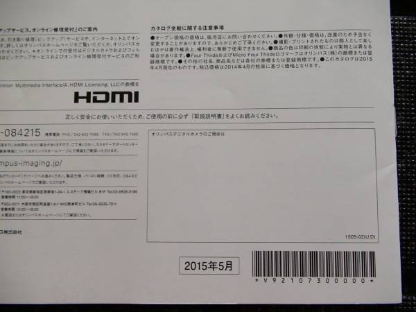 ▲【カタログ】 OLYMPUS オリンパス OM-D レンズ アクセサリー 2015