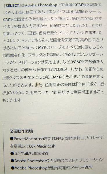Photoshop用 色調補正ツール Selectの新品未開封品です。詳細画像