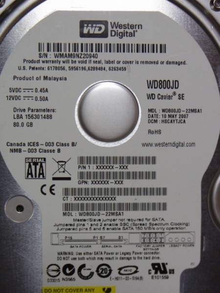 Western Digital Caviar SE WD800JD 80GB 7200RPM 8Mキャッシュ、