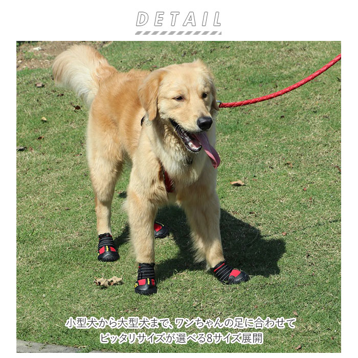 | 商品説明 | ・小型犬から大型犬まで、ピッタリサイズがきっと見つかる!ワンちゃんの足元をガードする、スタイリッシュなドッグ用シューズが新登場。 ・冬の乾燥時期や夏の焼けたアスファルトの上を歩く毎日のお散歩・・・。ワンちゃんの肉球は傷つきやすくてデリケート。そんな愛犬の足元を優しく守ってくれるワンちゃん用シューズ。 ・シューズ履き口にはV字スリットが入っていて装着スムーズ!さらに、2本の面ファスナーベルトで足首をグルっと固定すれば、脱げ落ちも防ぐ仕様。 ・靴底は程よい弾力のあるゴム素材を使用し、つま先の水濡れや汚れ、路面を歩く時のキズから肉球をガード。 ・足裏には星型の凹凸が刻まれているため、雨の日でも抜群のグリップ力。フローリングの床でもツルツルと滑らず、爪による床のキズも防いで一石二鳥。 ・生地の種類は、蒸し暑い時期のお散歩でも快適なメッシュタイプと、水滴をサッとはじくはっ水タイプの2タイプ。 ・夜間のお散歩時にキラリと光る反射材ラインと、可愛らしい肉球マークの黄色い刺繍がデザインの注目ポイント! ・チワワやポメラニアンなどの小型犬から、ゴールデンレトリバーのような大型犬まで、ワンちゃんの足に合わせてピッタリサイズが選べる8サイズ展開。 |