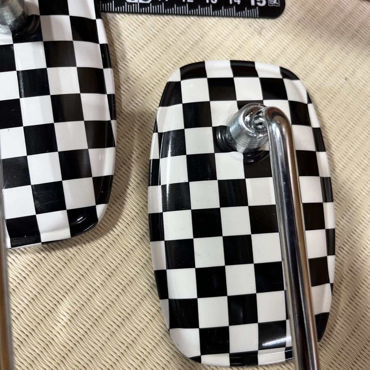 当時物 自転車用 ミラー チェック柄 スーパーカー 自転車 デコチャリ 昭和 レトロ カブ型 【JAPAN】 バックミラー