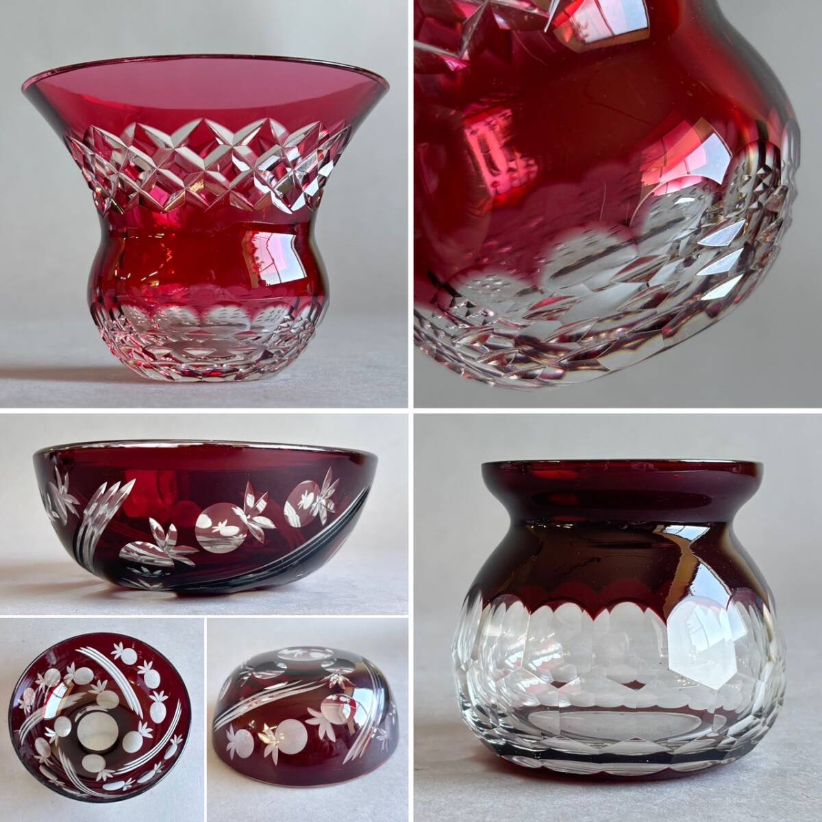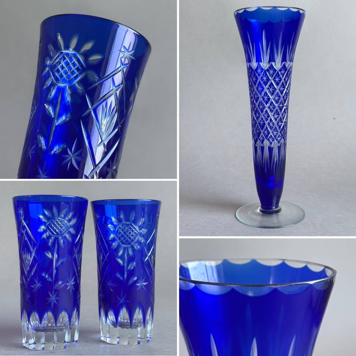 YM1300 大正 古い切子 グラス 冠水瓶 花器 など 約36点 まとめて 検)江戸切子 薩摩切子 紫被せ 伝統工芸 日本 ヴィンテージ カットグラス
