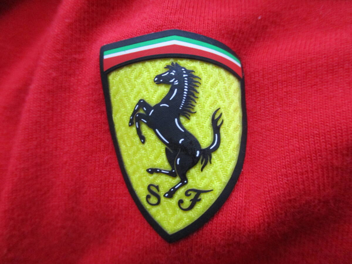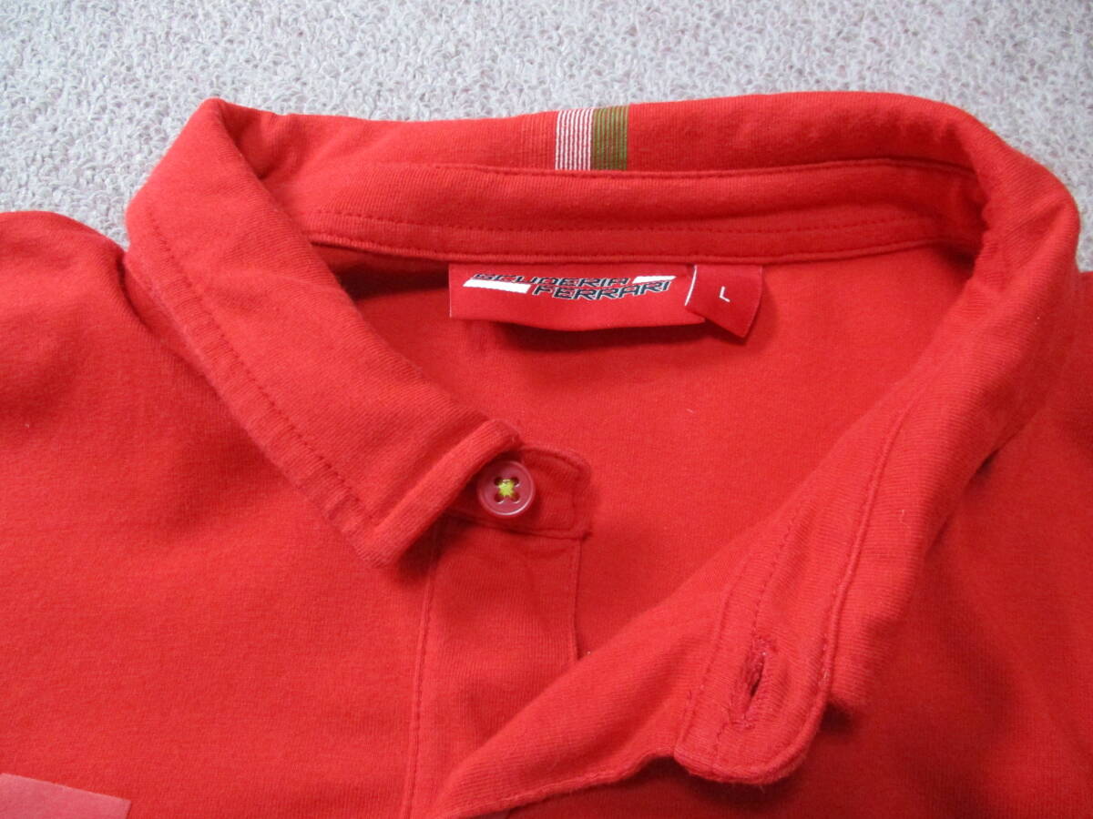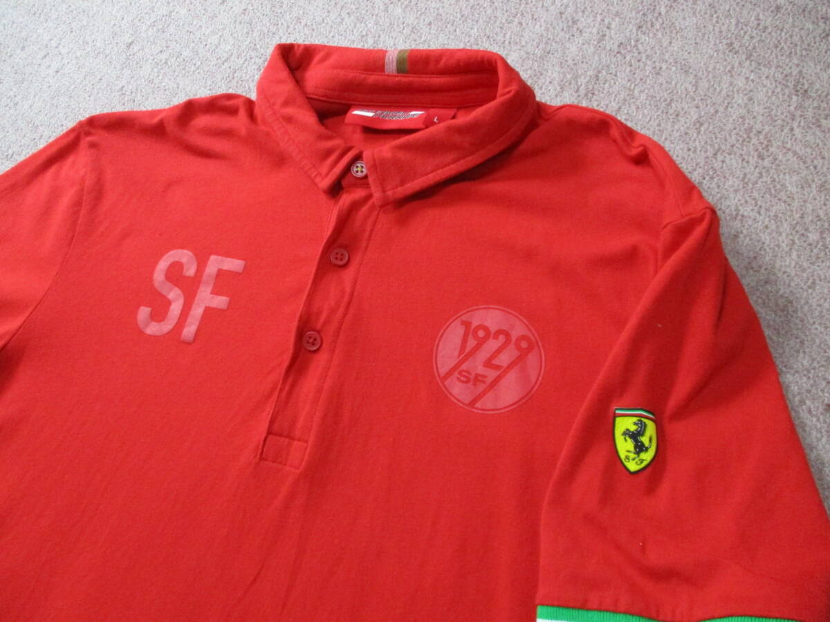オフィシャルライセンス品、1929年、エンッオ・フェラーリによって創業された歴史と伝統を誇る世界最高峰の自動車ブランド、フェラーリのワークス・レーシング・チームである、スクーデリア・フェラーリ(SF)をモチーフした、機能的でファッション感覚溢れる、ポロシャツでLサイズの表記“