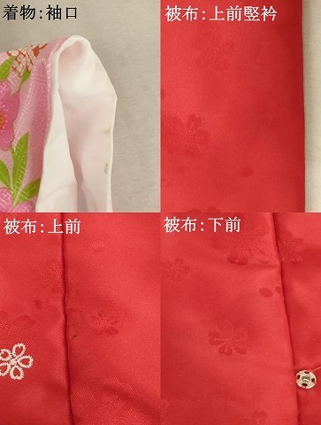 | 【祝着】 身丈 69.5cm(肩から) 裄丈 36.5cm(肩上げ 4.5cm) 袖丈 56cm 縫込み 2cm 袖幅 26cm 前幅 14.5cm 後幅 19cm 着物縫いこみ 内揚げ 0cm (腰上げ 10cm) 裄 お袖側 約1cm 身頃側 約0.5cm 【被布】 身丈 49.5cm(肩から) 裄丈 13.5cm(肩上げ 1.5cm) 【長襦袢】 身丈 64.5cm(肩から) 裄丈 36cm(肩上げ 4cm) 袖丈 55cm 縫込み 1.5cm 袖幅 23.5cm 前幅 16cm 後幅 20cm 着物縫いこみ 内揚げ 0cm (腰上げ 3.5cm) 裄 お袖側 約2.5cm 身頃側 約1cm 《 サイズについてはこちら 》 |