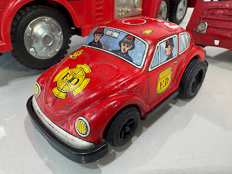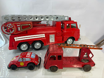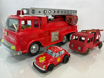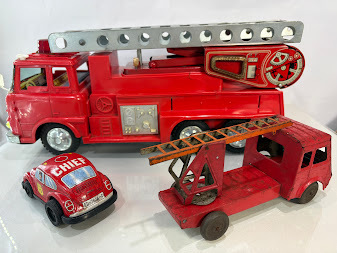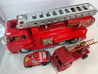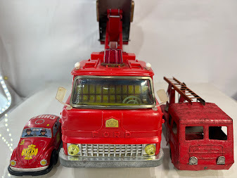 旧ヨネザワ玩具 42センチブリキ プラ フォードハシゴ消防車 他消防車両 3台まとめルノーハシゴトラック ビートルファイヤーチーフなど