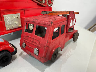 メーカー不明 18センチ ルノートラック ハシゴ消防 全部ブリキ 経年サビ コロコロ