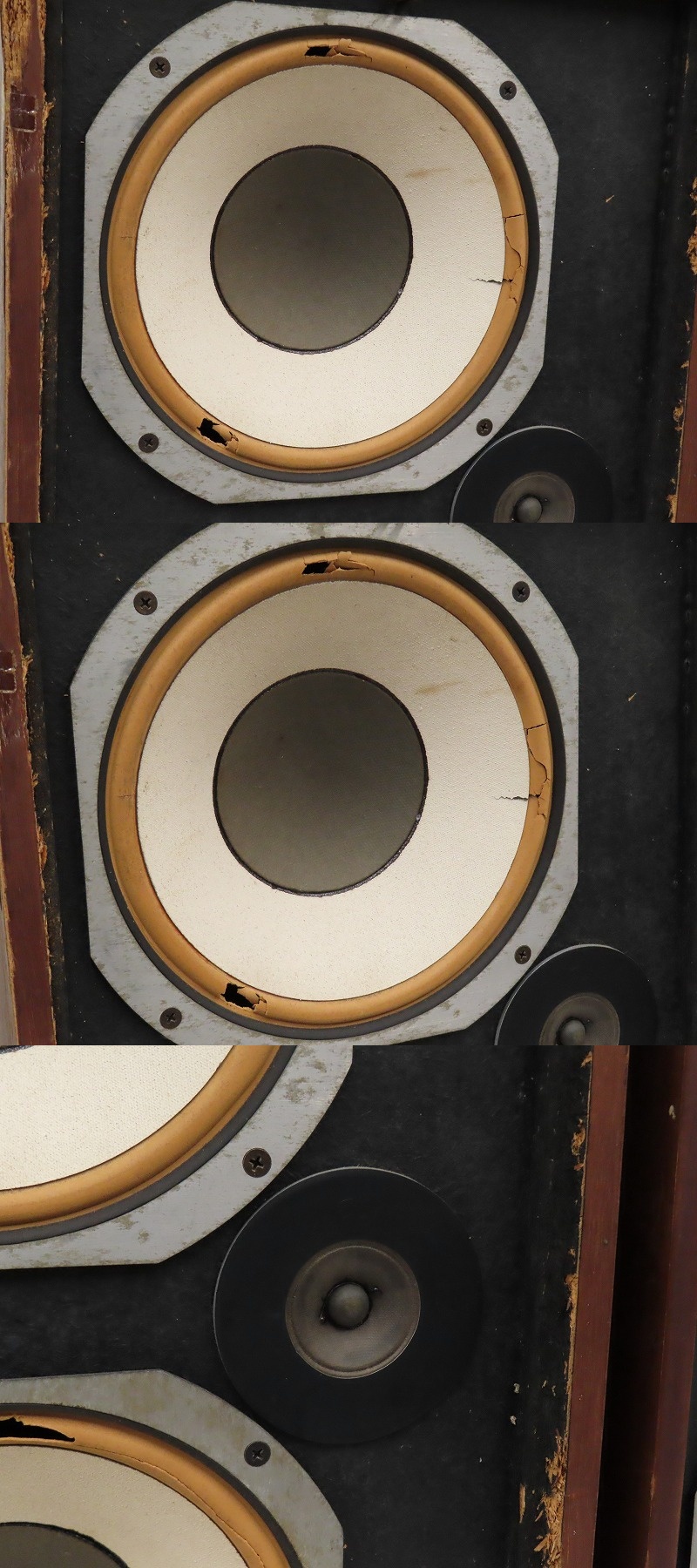 ■メーカー : JBL ■型番 : L77 Lancer ■外径寸法 : W365×H610×D305mm ■重量 : 16.4kg ※弊社実測の為、多少の誤差はご了承下さい。 ※ペアでの出品となります。 【商品の状態 当店での確認内容】 動作確認をしたところ、左右共にウーファー1個の出音が小さいです。 また、片方のウーファーエッジに割れ/サランネットに1箇所ホツレがございます。 片方サランネットが欠品しております。 ※上記により【難あり商品】としての出品となります。 「商品の状態」に関しましては当方主観の目安となります。外観などは中古品で個人差もありますので詳細は画像にてご判断ください。 画像にて不明な点はご質問下さい。 出品商品は画像のものですべてになります。画像に写っているもの以外は付属いたしません。 ※注意※ ヤフオクのシステム上、送料表記が送料未定となっておりますが、送料に関しては全て有償となりますので下記を参照下さい。 【送料 全国一律 7,200 円 沖縄、離島は別途お見積り】 ※送料がお得になるサービスです(下取りシステムのご案内です) ストア決済利用時にクレジットカードやPayPay残高/PayPayクレジットを利用の方は留意点がございますのでこちらを参照上ご利用ください。 当ストアでは商品を安全にお届け出来るよう提携運送会社と協議の上、発泡緩衝材や強度段ボールの使用等 運送会社が指定する梱包方法や資材を採用しております。 より安全にお届け出来るよう商品仕様により梱包サイズが大きくなる場合や個口数が増える事がございます。 【当ストアオークションルールを入札前に必ずご確認ください。】 【落札後の取引手順】 ・落札後は取引ナビにて、必要事項をご入力後、送信ください。 取引終了後48時間(土、日は除く)以内に入力をお願い致します。 ※ご連絡が頂けない場合は落札者様都合でのキャンセルとさせていただきます。 ・落札代金(商品代金+消費税+送料)の入金をお願い致します。 ※大型商品の場合は送料確定後の決済となる為取引ナビを入力頂き、当ストアより送料のご案内が来るまでお待ちください。(土曜、日曜、祝日の場合は翌営業日より順次ご案内いたします) ・お支払い方法はクレジットカード/PayPay残高/PayPayクレジット/PayPay銀行/ゆうちょ銀行のみです。 ※商品代金引換(代引き)のお取り扱いはしておりません。 ※領収証の発行が必要な方はご連絡ください。 ※銀行振込の際の振込手数料はご負担願います。 ・入金確認後に出荷手配を致します。 (原則入金確認後3営業日以内に発送いたしますが、大型や重量のある製品はお時間をいただく場合もございます。) ・発送は当店指定の運送会社の元払いのみでの発送となります。 ※他の運送会社、送料代引き等は致しかねます。 ※落札者様ご自身での運送会社の手配いただく事も可能ですが荷物事故の責任の所在の問題上、梱包は致しかねます。 ※店頭にお越し頂き手渡しも可能(福岡市早良区)です。ご希望の方はご落札後にご連絡下さい。 ・大型/重量物商品の送料につきましては商品の特性上、荷降ろし状況等により送料が大きく前後し運送業者に別途見積りが必要な為、早めのお問い合わせにてお見積り上、入札をお願い致します。 【初期不良の保証について】 ・商品到着後の初期動作不良、また配送中の事故による破損、不具合が有る場合は、商品発送後10日以内に当ストアまでご連絡ください。当ストアでは修理での対応を優先させて頂きますが、修理不可の場合は全額返金させて頂きます。 (商品代金+消費税+送料のお支払い頂いた金額となります) 【初期不良の保証の対象外について】 次の場合は保証の対象外となりますのご留意ください ・ジャンク商品、現状商品、難あり商品での出品商品。 ※難あり商品に関しましては動作確認時に一部動作不良が確認された商品になり、記載している動作確認以外にも、動作不良がある可能性もございます。こちらに関しましても保証対象外となりますことをご理解ください。 ・年代物のオーディオなどで、当店にてわからない範囲で部品が交換されている場合 ・楽器類の特殊機材(マイクロスコープ等)での確認までは行っておりません。気になる方は事前にご質問いただくか、入札をお控えください。 ※初期不良に関しましては【商品の状態】に記載のもの、またそれによって起因する動作不良は対象外です。 ※商品発送後10日を過ぎてのご連絡は対応が出来ませんので、商品が到着しましたらお早めに確認をお願い致します。 【メーカー保証の加入・継承】 ・未使用品、展示品やメーカー保証期間が残っている商品に関しまして、メーカー保証の加入、継承が必要な方は、落札後取引ナビ内にて当ストアにお知らせください。商品発送までにご連絡いただけない場合、メーカー保証の手続きを承れない場合があります。 【評価について】 ・評価不要の場合、必ず取引ナビの「要望欄」にてお知らせください。それ以外でご連絡をいただいた場合、対応できない可能性