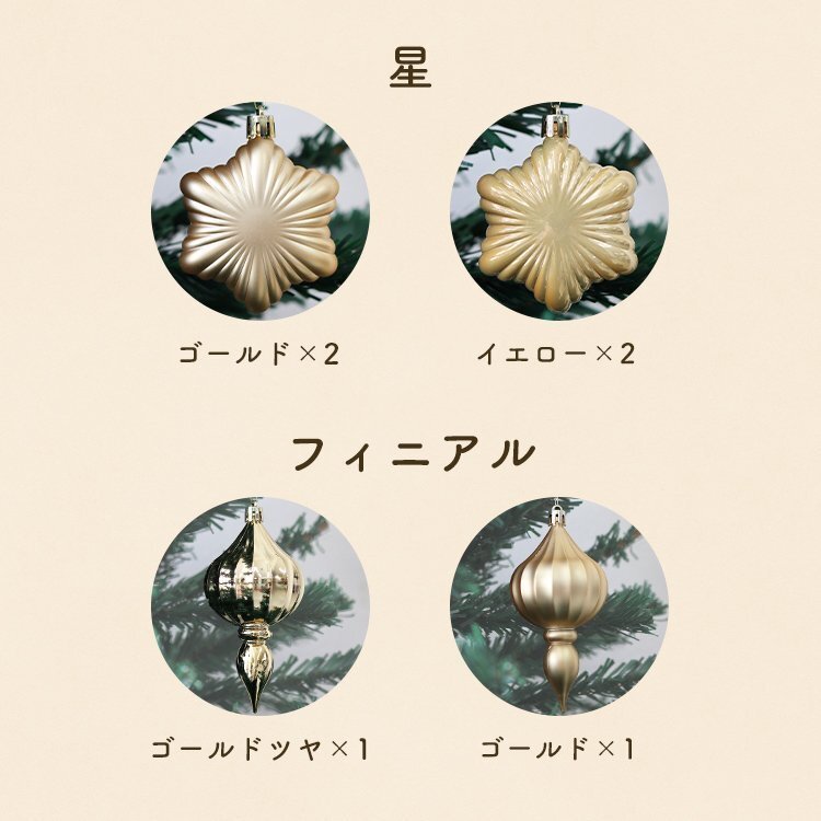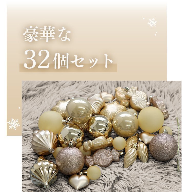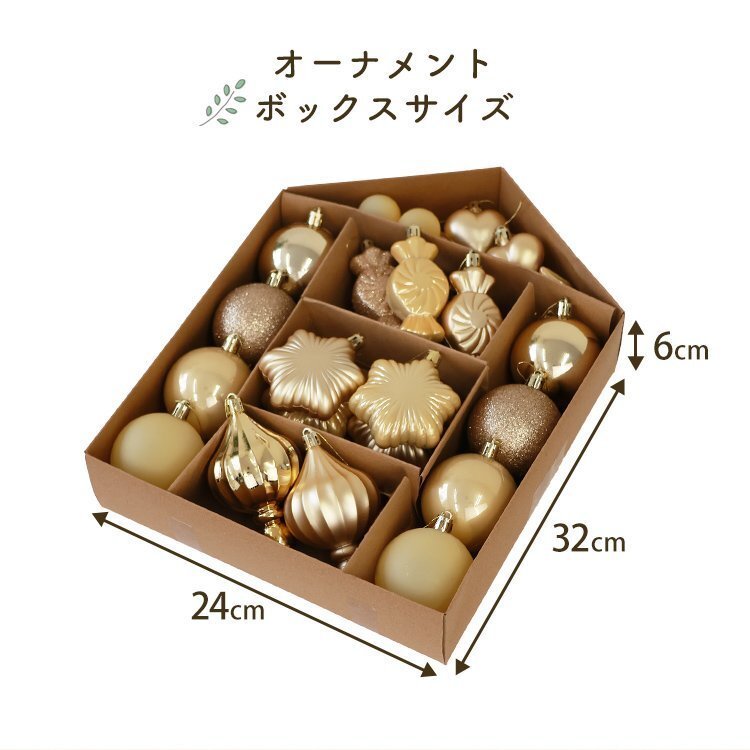 | 思い出に残るキラキラのクリスマスに♪ 豪華な32個のオーナメントセットです。 ボールや星、フィニアル、キャンディー等、バリエーション豊富な14種類入り! 届いてすぐ飾れる同色の紐が付属しています。 ご自宅はもちろん、お店などにもおススメです! さらに、オーナメント単体で壁面飾りやタッセルの使用もおススメです♪ 可愛いおうち型ボックスに入れてお届けします☆ クリスマスツリーも販売中! ツリーとセットで購入して、オリジナルツリーをつくって楽しみましょう!! ※オーナメント単体ページです 【商品仕様】 サイズ(約):横24cm×縦32cm×厚さ6cm(ボックス全体) (ツリー ヌードツリー 電飾 イルミネーション 針葉樹 パーティ 店舗 インテリア 豪華 かわいい 人気 おすすめ WEIMALL) |
