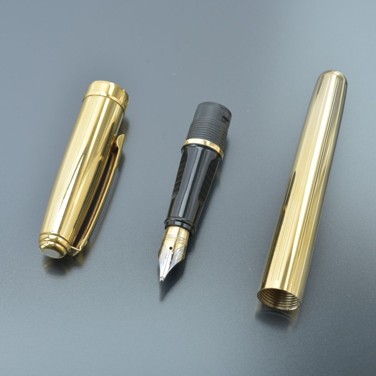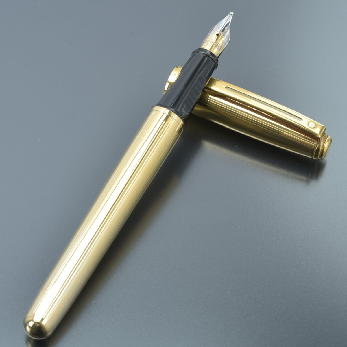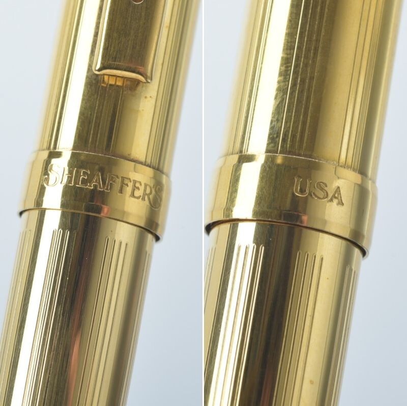美品 SHEAFFER シェーファー 万年筆 ゴールド ストライプ キャップ式 文具 文房具 #N※C744/k.b