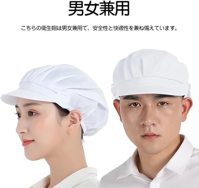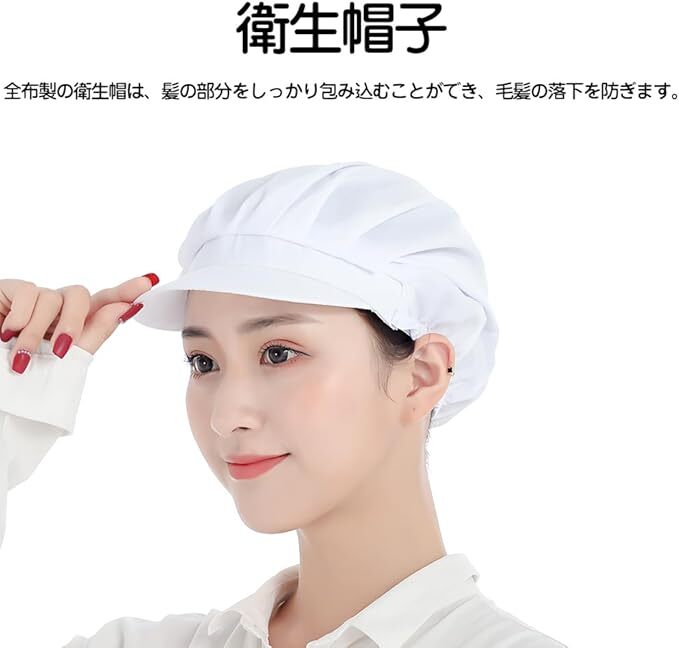 衛生帽子:衛生帽は安全性と快適性を兼ね備えており、毛髪の混入を防ぎ、快適にご着用いただけます。