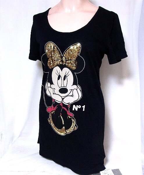 ★☆JOYRICH 金色スパンコール付きミニマウス黒半袖ミニワンピース☆★