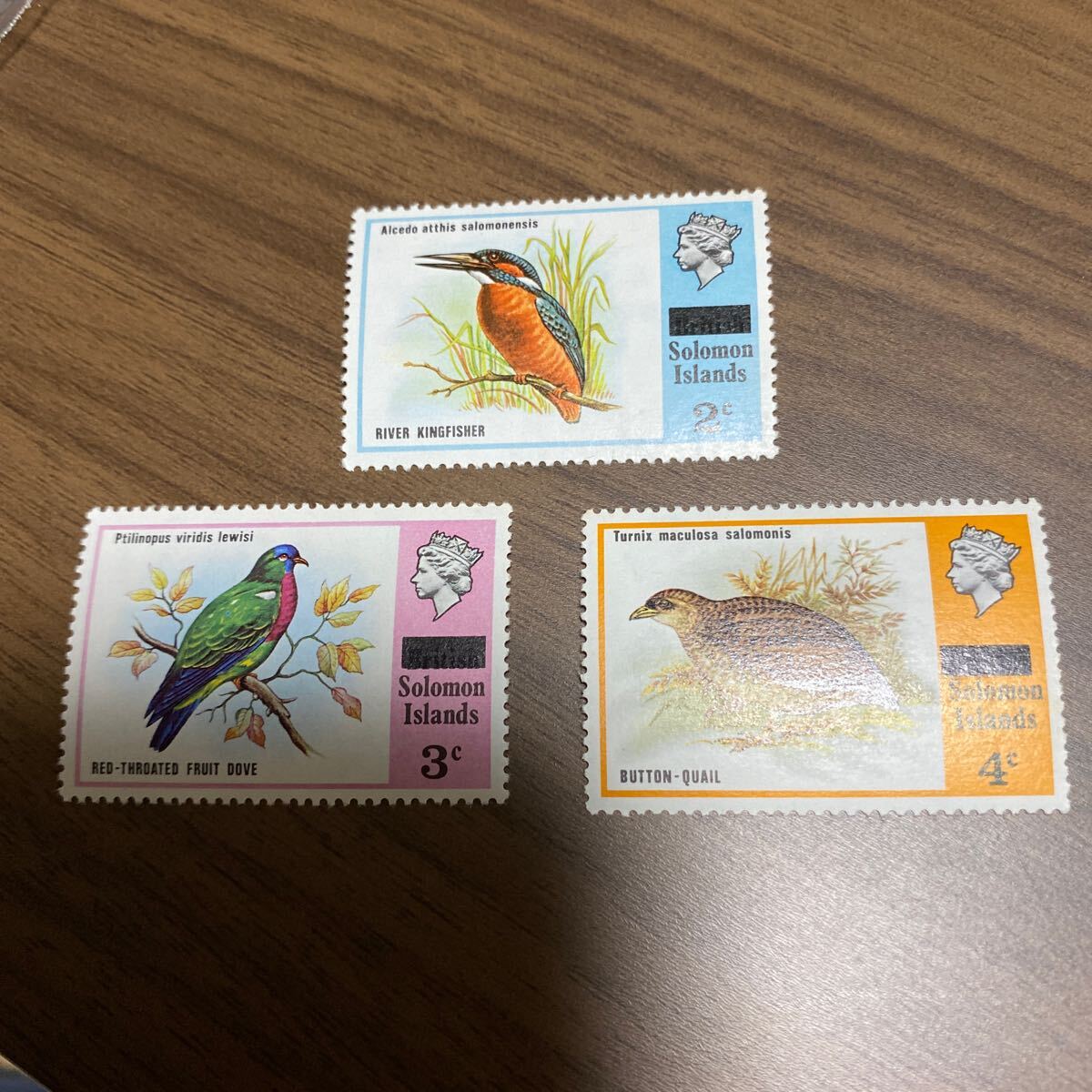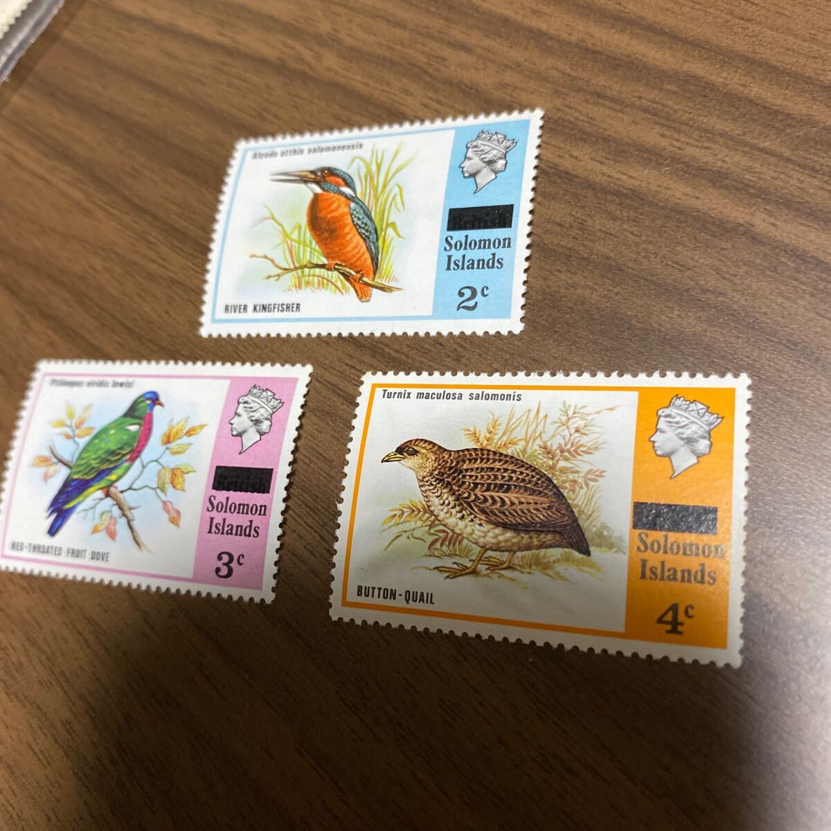 ソロモン諸島切手 鳥3種類 アカノドミドリバト ミフウズラ カワセミ 外国切手 コレクション 未使用品