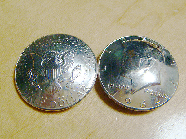 アメリカ,ケネディハーフダラーコンチョ,本物(銀位90%),即決
