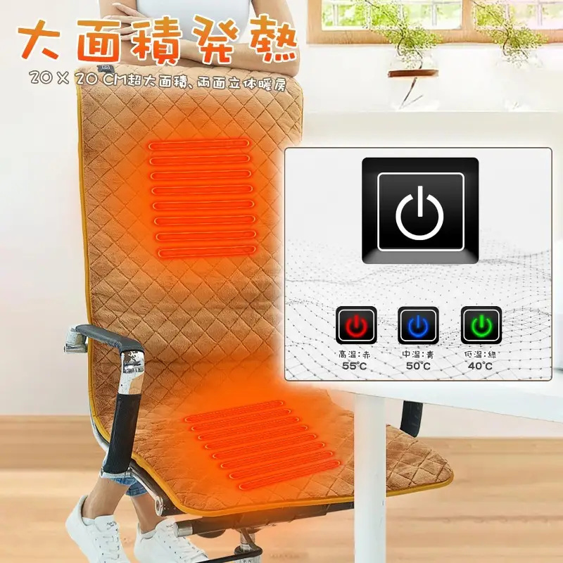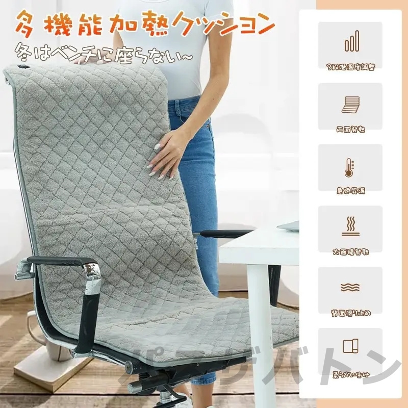 電気座布団 椅子用 126×50cm 腰や背中がじんわりあたたまる 電熱 ホット マット ヒーター USB給電 30秒速暖 一人用 丸洗い可
