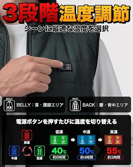約3秒で全身を温める高性能電熱ベストです。