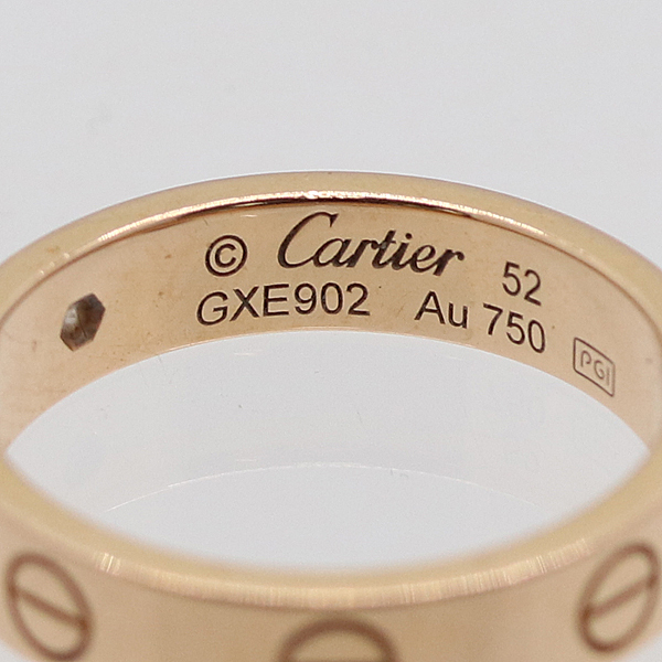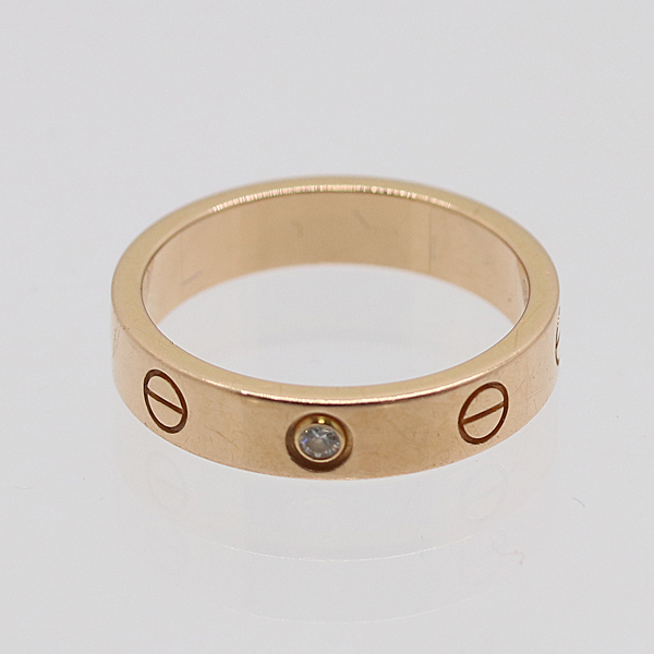 1円 美品 カルティエ ラブリング 750PG ミニラブ 1Pダイヤ #52 4.6g アクセサリー ジュエリー 7516410 10KHT AKO KMR