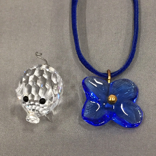 | バカラ 金具 750 オルテンシア フラワーネックレス サファイアブルー 他 スワロフスキー クリスタル 豚 置物 含 計2点 |