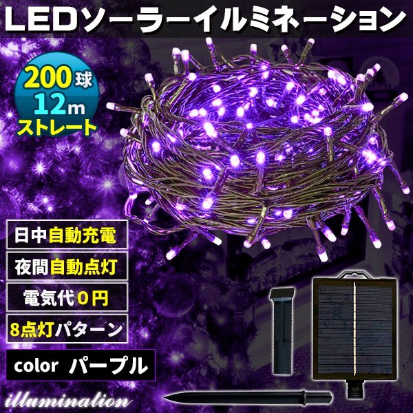 ソーラー イルミネーション 屋外 クリスマス ストレート 屋外用 イルミネーションライト 200球 パープル