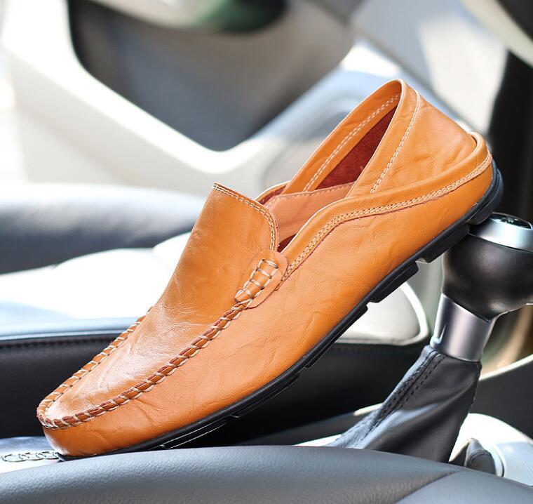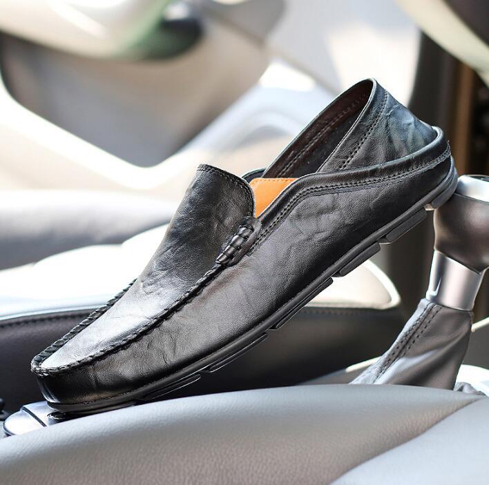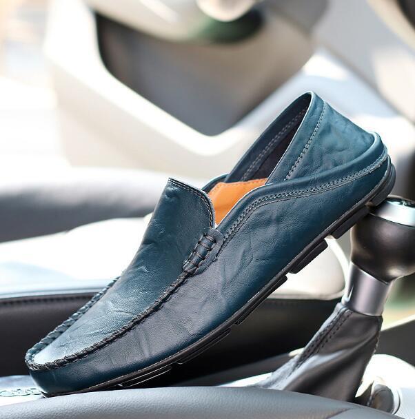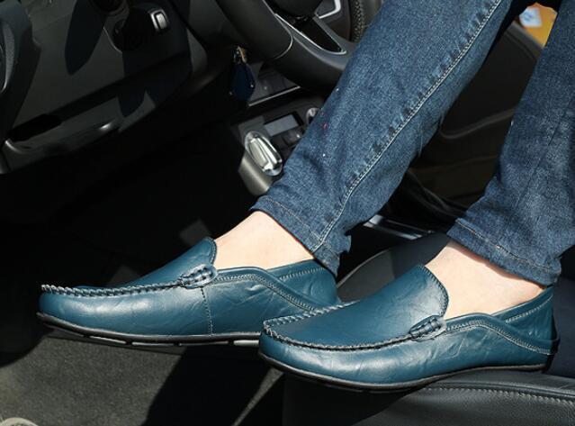 新品 上質 本革 モカシンシューズ メンズシューズ レザーシューズ ローファー スリッポン ドライビングシューズ*ネイビー 24.5cm~28.5cm