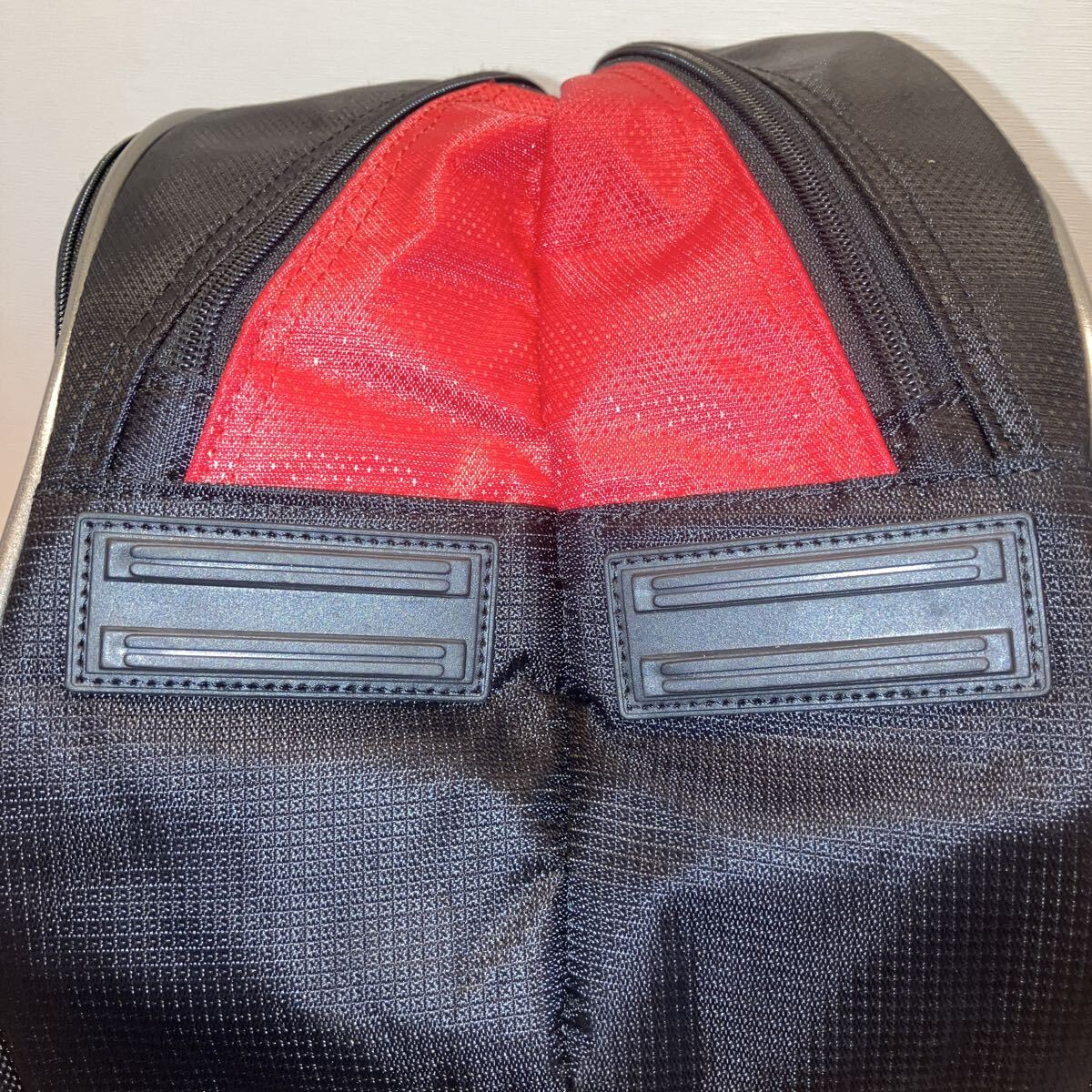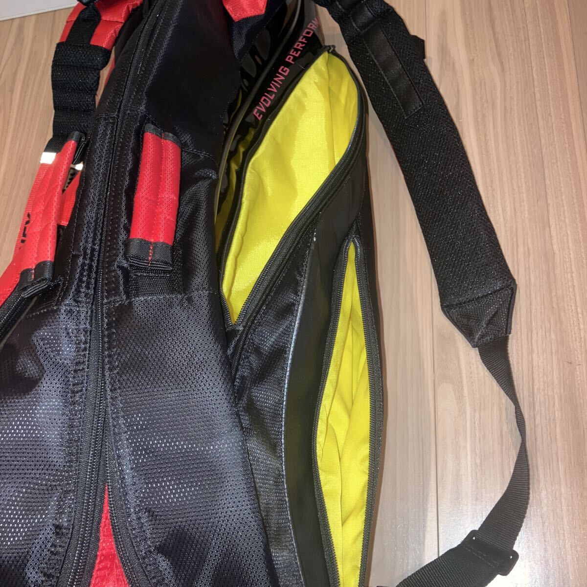 ラケット4本ぐらい入りそうです。ショルダーも付いているので、背負う事も出来ます。