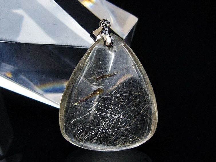 | ■商品名: 金針ルチル水晶ペンダント ■商品ID: T86-7037 ■商品重量:約 15.4g ■商品サイズ: 高約:35mm 横約:29mm 厚約:11mm 【ルチルクォーツ(針入水晶)】 ルチルクォーツは近年大人気の針状物質が入った水晶です。繊細な針が水晶の中でひしめきあい、きらきらと輝く様はまさに自然の芸術品。 様々な色のタイプがありますが、共通する効果としては財運や金運を強力に集め、事業運、商売運、目標達成、直観力をもパワーアップさせると言います。また邪気を払ってくれるとされています。 財に関わる直観力が冴えるとされますので、投資やギャンブル運アップも期待できます。 ■ワンポイント情報 一般にクリアでかつ金針が密集しているもの程価値があるとされていますが、内包物を含む水晶は濁ったように結晶しやすく、ルチルクォーツは針が多くなるとどうしても透明感は下がってきます。しかしながら天然石は世界に一つしかありません。いろいろ状態のルチルがありますので直感で閃いたものが、世界で一人の自分のための水晶といえるでしょう。 気の遠くなるような年月をかけ育つ水晶の中に、偶然に針状物質が入り込む。この奇跡のような自然の神秘に是非触れてみて下さい。体の底からパワーが湧き出してくるはずです。 【水晶(石英、クリスタルクォーツ)】 水晶とは石英を指しますが、一般的に無色透明のものをクリアクォーツやロッククリスタルと呼んでいます。 水のように美しく透き通ったものが良いと思われがちですが、内部にヒビや他の鉱物などのインクルージョン(内包物)が入っているものがあり、それが天然物の証。また、インクルージョンによって様々な種類に分類され、それぞれ違った印象を与えてくれます。 古くから呪い事に使われてきた水晶に秘められたパワーはとても万能で、あらゆる場面に対応するといわれています。特に邪気を祓う力が強いため、人間関係を円滑にしたり、心身をクリアな状態にしたい場合に最適です。また空間を浄化する作用もあるとされ、インテリアとしても高い人気を誇っています。 石自体に強い自浄作用があり、他のパワーストーンが吸収した負のエネルギーを浄化するといわれています。更にアクセサリーとして他の石と組み合わせる場合、それぞれの石の個性を引き出しバランスを取ってくれる効果があるそうなので、ぜひとも組み込んでおきたいですね。 パワーストーン入門に最適な水晶ですが、愛好家にとってはかなり奥が深く最後に行き着くのもこの石なんだそうです。何もかもを見透かすような透明な水晶には、本当に神秘的なパワーが宿っているのかもしれません。 |