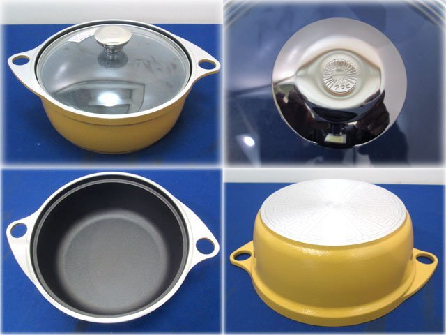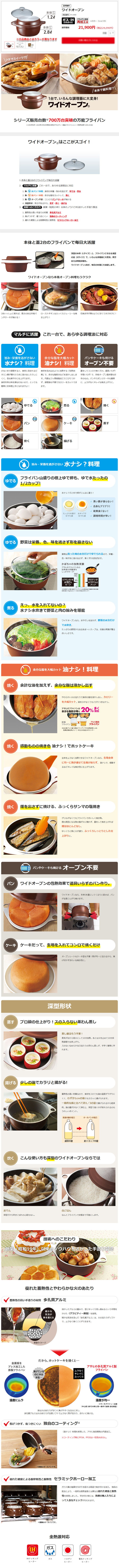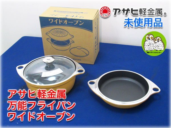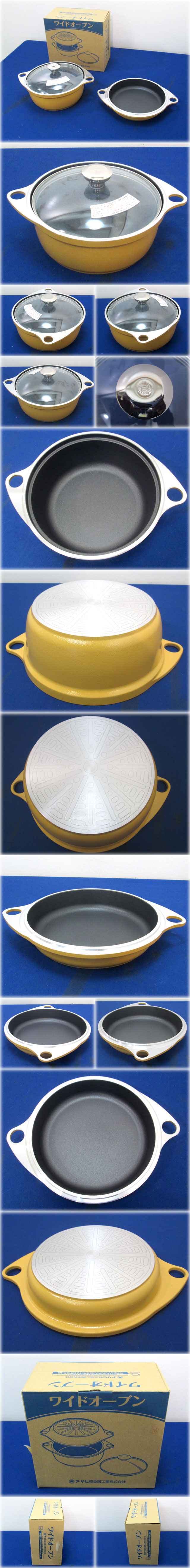 アサヒ軽金属 万能フライパン(両手鍋) ワイドオーブン を出品いたします。 ■特徴■ シリーズ販売台数700万台突破の 万能フライパン 本体と蓋2台のフライパンで毎日大活躍 深型の本体(Lサイズ)と、 フライパンにもなる浅型の蓋(Sサイズ)で、 いろんな調理器に大変身。 両方使えば時短調理も。 ワイドオーブン1台が、 毎日の料理に大活躍します。 ワイドオーブンなら本格オーブン料理もラクラク 2台いっしょに使えば、 高さのある本格パンやケーキが焼ける! ローストチキンはふっくらジューシーな焼き上がり! 石焼き芋が栗のように甘くてホクホクに! 蓄熱性の高い手造りの材質 多孔質アルミ 溶かしたアルミの重みで、 型にゆっくり流し固めるという手間をかけた 〈グラビティー鋳造〉を採用。 細かな気泡を含んだ「多孔質アルミ」は、 火の当たりがソフトで、ムラなく焼くことができます。 焦げつかず、傷つきにくい 独自のコーティング※ 〈油ナシ!〉料理を実現した、アサヒ独自開発の内面加工。 ※コーティング剤にPFOA、PFOSは一切含みません。 優れた硬度による耐摩耗性と耐熱性 セラミックホーロー加工 ガラス質の釉薬を 500℃を超える高温で焼き付ける加工。 独自の配合により、 一般的な耐熱塗装とは異なる 優れた硬度と耐熱性を実現しました。 吹き付け時には、熟練の職人たちによって 入念なチェックが行われます。 ■仕様■