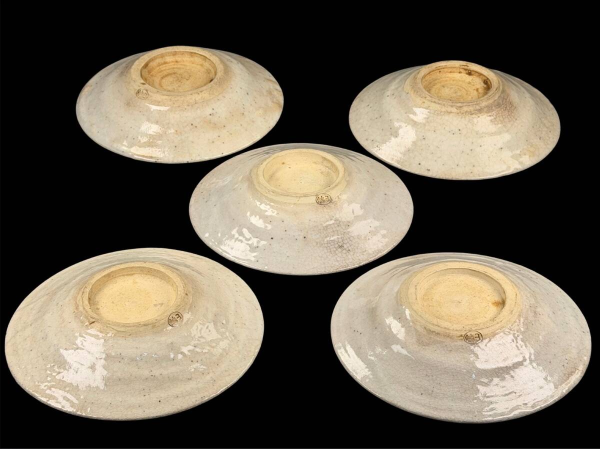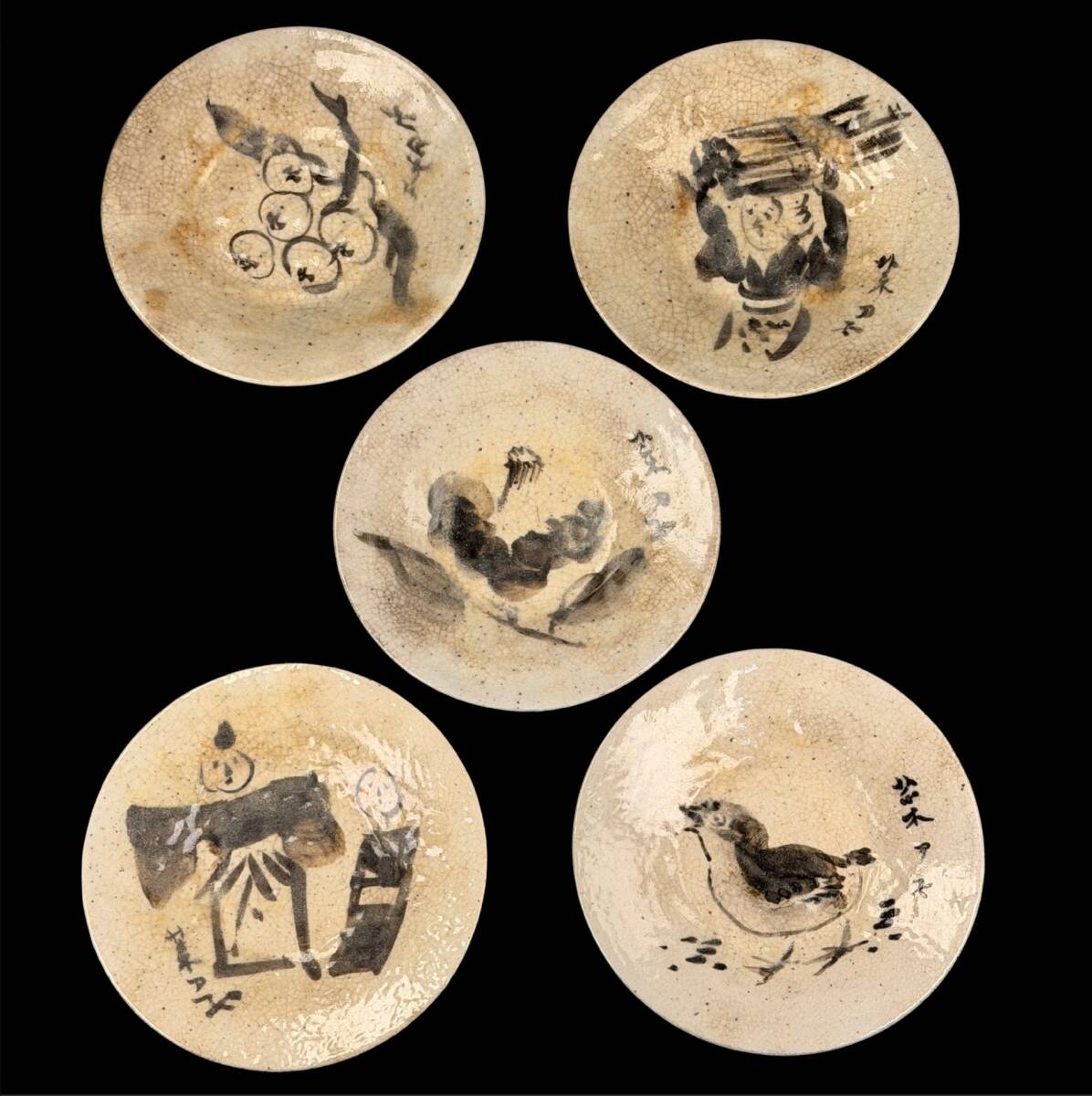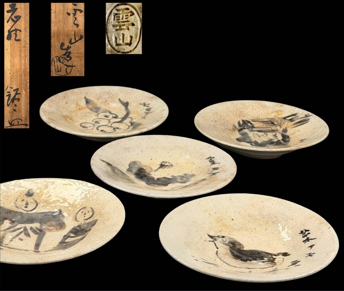 【偲】向付 銘々皿 図変わり 雲山銘 5枚揃い 取皿 絵皿 和食器 幅約15cm 素朴な味わい j-332