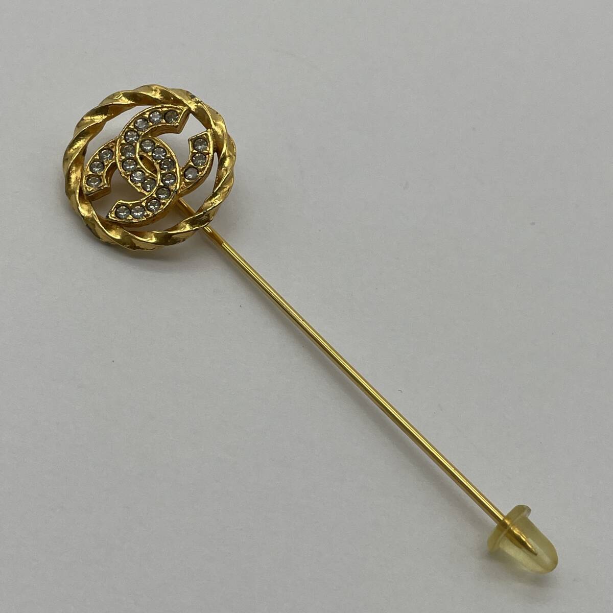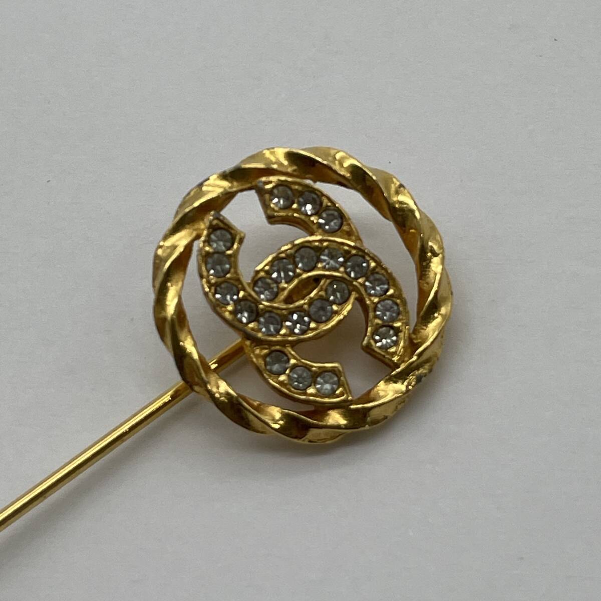 希少【CHANEL シャネル ラインストーン ココマークピンブローチ ゴールド ヴィンテージアクセサリー ブランドジュエリー 1058 レトロ】