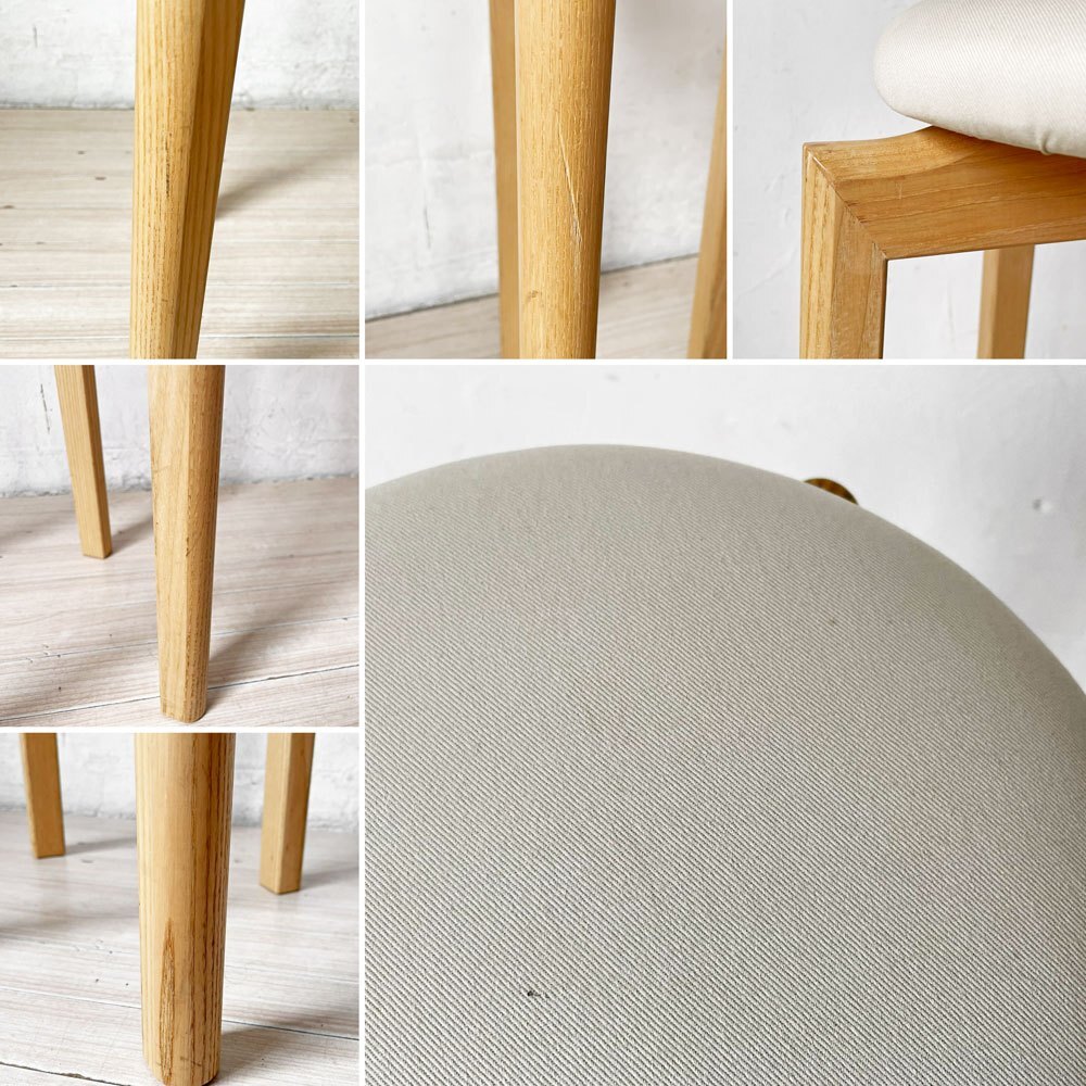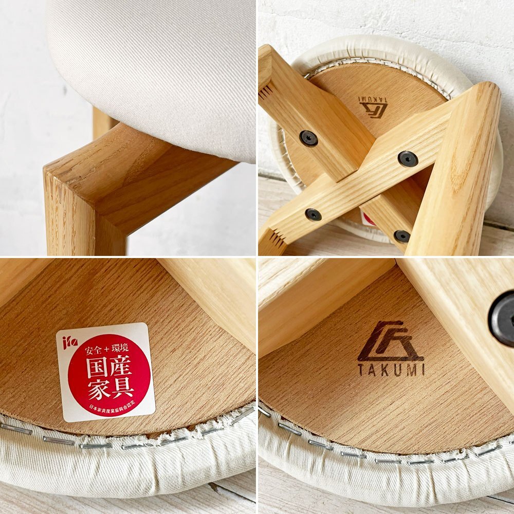 | コメント | 1979年に創業した木製家具の専門メーカー、匠工芸(TAKUMI)。家具の産地として知られる旭川にほど近い場所で、人の手を感じられる製品を作り続けています。 「マッシュルームスツール | MUSHROOM」は、ちょっと腰掛けたいという時に便利な小ぶりなハイスツール。多様なサイズとファブリックカラーで展開される人気のアイテムです。 すらりと伸びる脚部に丸くぽっこりとした座面。名前の通り、まるで森の中にちょこんと生えたキノコのような可愛らしいシルエットがたまりません。 また、ファブリック座面はさらりとした肌触りが心地よく、ホワイトアッシュ材のナチュラル感も相まってインテリアに程よくなじんでくれます。 高さは65cmのLサイズ。カウンターチェアやキッチンの作業椅子等、座面の高さが必要なシーンで便利にご活用いただけます。 コンパクトなのに、軽量でスタッキングもできる万能なハイスツール。職人さんによるこだわりの意匠が詰まった1脚です。 ※当ショップは、主にリサイクル品を取り扱っております。基本的にUSED品である事をご理解頂き、ご入札をご検討下さいませ。 |