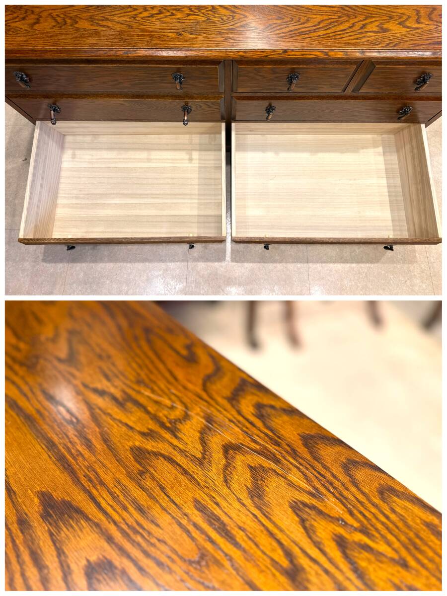 三越ブルージュならではの端正なクラシックデザインが際立つ、 存在感あふれるワイドチェストです。 上質な木材を贅沢に用いた重厚なフォルムは、 空間に落ち着きと品格をもたらし、 ブルージュシリーズ特有の深い色調と繊細な装飾が、 上質なアンティーク家具のような佇まいを演出します。 幅広いサイズながら、引き出し一つひとつが丁寧に作られており、 衣類・リネン類・雑貨などをしっかり分類して収納できる実用性も魅力。 滑らかな開閉や堅牢なつくりは、 長く使える“良い家具”としての信頼感を感じさせます。 リビングや寝室など、どの空間に置いても品よくまとまり、 華やかさと落ち着きを両立させる一台。 クラシックインテリアをお求めの方にぜひおすすめしたい、 三越ブルージュを代表するチェストです。 【商品状態】 中古としては状態の良いお品です。 天板に傷がありますので写真にてご確認下さい。 引き出しはスムーズに開閉できます。 【商品詳細】 サイズ: W 1350 D 450 H 700 【発送】 アートセッティングデリバリーでの発送となります。 サイズランク: Cランク -=--=-=-=-=-=-=-=-=-=-=-=-=-=-=-=-=-=-=-=-=-=-=-=-=-=-=-=-= 【取引詳細】 ・落札後のキャンセルはお受けできません。 ・支払いはヤフーかんたん決済のみとなります。 ・配達日、時間のご指定がある場合は落札後、お支払い前にご連絡下さい。 地域によっては時間指定ができない場合もございますのでご了承下さい。 配達日時のご指定のない場合は最短での配達となります。 大きなサイズの商品については予め搬入経路のご確認をお願い致します。 吊り上げ等の作業が必要な場合はお客様のご負担となります。 ・返品はお受けできません。 ・中古品の為、欠損やダメージの見落とし等ある場合がございます。 写真に載っていない・説明に書いていないなどの理由での返品も原則応じかねます。ご理解頂いた上でのご入札をお願い致します。 ・商品について気になる事がありましたら、お気軽にご質問下さい。 ・即決、値引きについての質問にはお答えできません。 ・オークションの取消 出品中の商品は店頭販売も行っております。 店頭で販売された商品については取消、取引のキャンセルを 行う場合がございますので予めご了承下さいませ。 ■■■お願い■■■ ・落札後、24時間以内にご連絡お願い致します。 ・直接のお引取ご希望の場合はその旨ご連絡下さい。 ・ヤフオク仕様変更により、こちらからお客様お電話番号が見えなくなっております。 アート依頼時に必須になりますのでお客様のお電話番号をお知らせ下さいませ。 ■■■発送方法■■■ ・送料は元払いで発送致します。 ・送料は落札者様負担となります。 *上記の内容をご理解頂き納得の上 入札をお願い致します。 -=--=-=-=-=-=-=-=-=-=-=-=-=-=-=-=-=-=-=-=-=-=-=-=-=-=-=-=-= アンティーク家具や雑貨を取り扱っている店舗より出品をしております。 ヤフーオークションへの出品は一部商品となっておりますので 機会がございましたら店舗へのご来店をお待ちしております。 静岡県伊東市吉田 142 SNSにて入荷商品や、店内の様子を紹介しております! 下記のアカウントで検索してみてください♪ Instagram:@aston_antiques TikTok:@aston_antiques -=--=-=-=-=-=-=-=-=-=-=-=-=-=-=-=-=-=-=-=-=-=-=-=-=-=-=-=-= ■■■当店ホームページ■■■ https://aston-recycle.jp/ ホームページに店舗のご案内が掲載されていますのでご覧下さい。 | |||