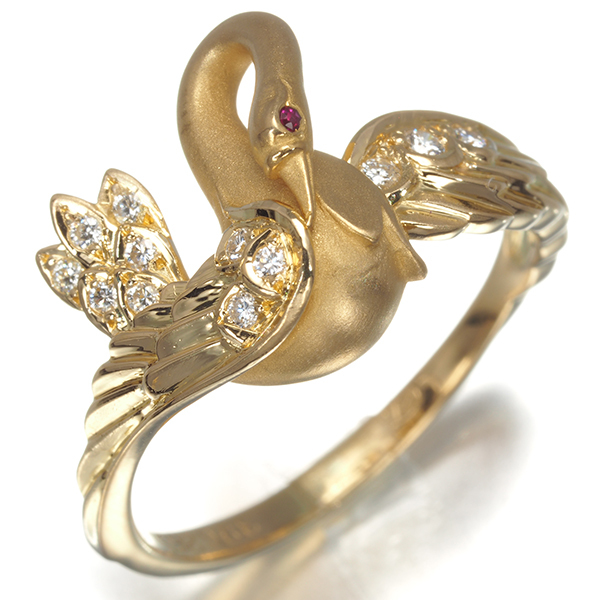 卓越した技術から芸術性豊かなジュエリーの数々を生み出す王室御用達ジュエラー カレライカレラの逸品。こちらは、美しい白鳥の姿を演出したリング。ルビーの瞳と共に飾られた上質ダイヤモンドの煌めきが素晴らしいデザインを引き立てます。 |