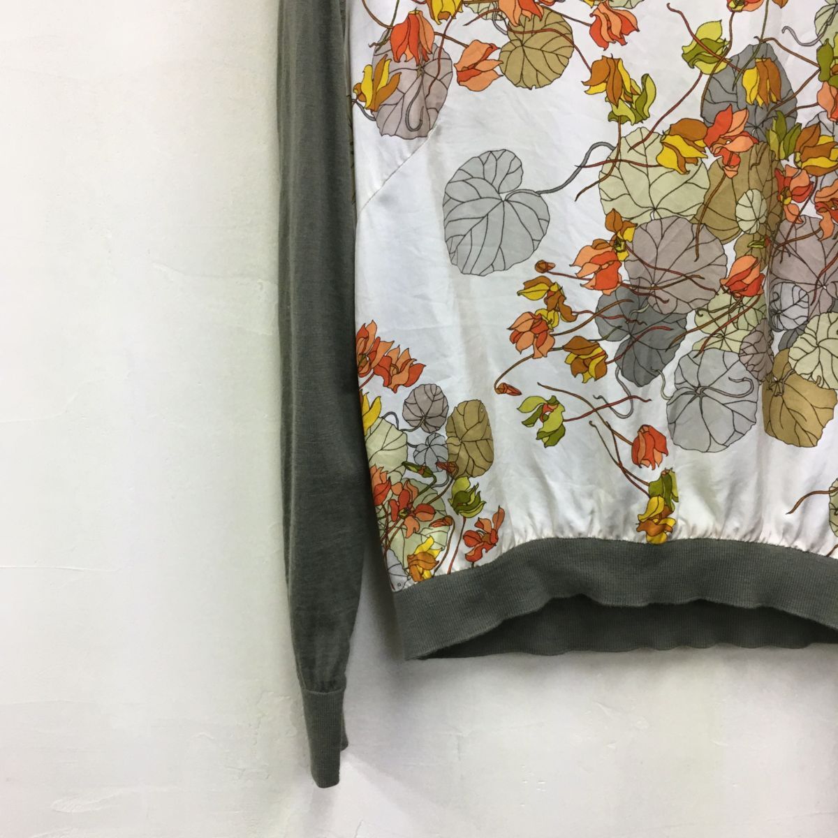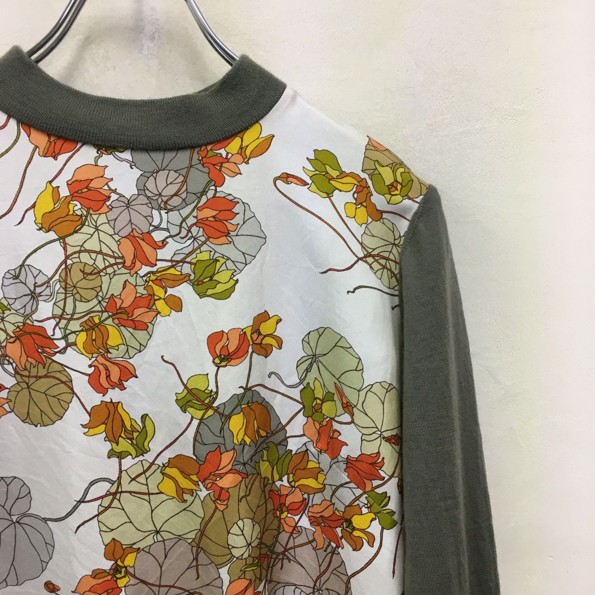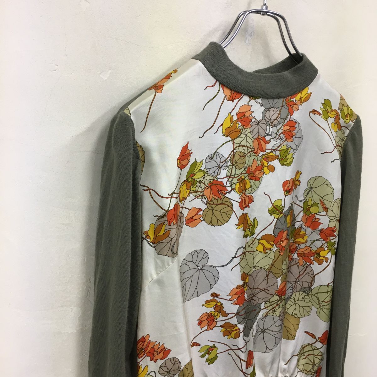 2K1956-G◆ cml MAGLIERIA DI LUSSO TORINO 異素材コンビニット フラワープリントサテン レトロ バックボタン ◆ size46 カーキ