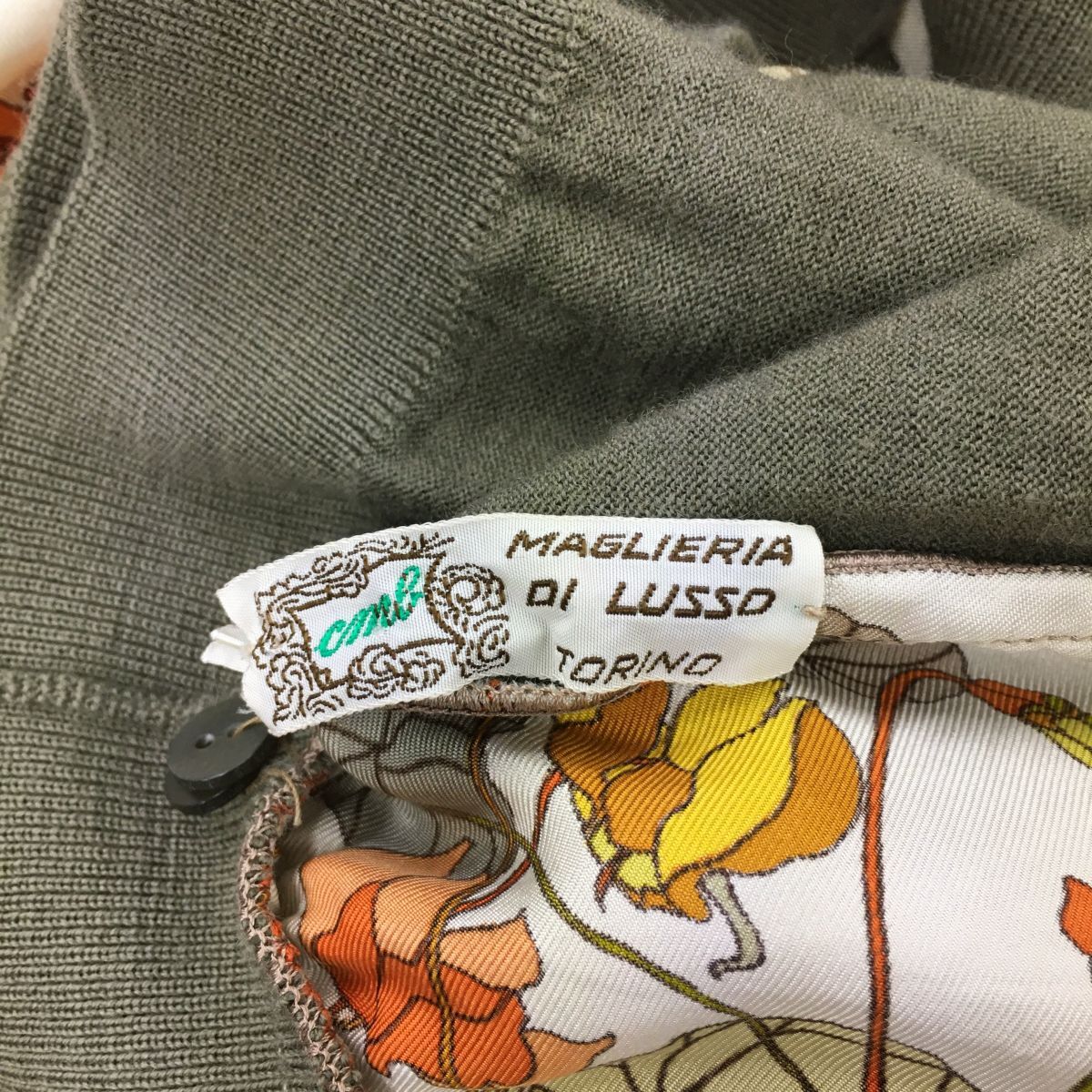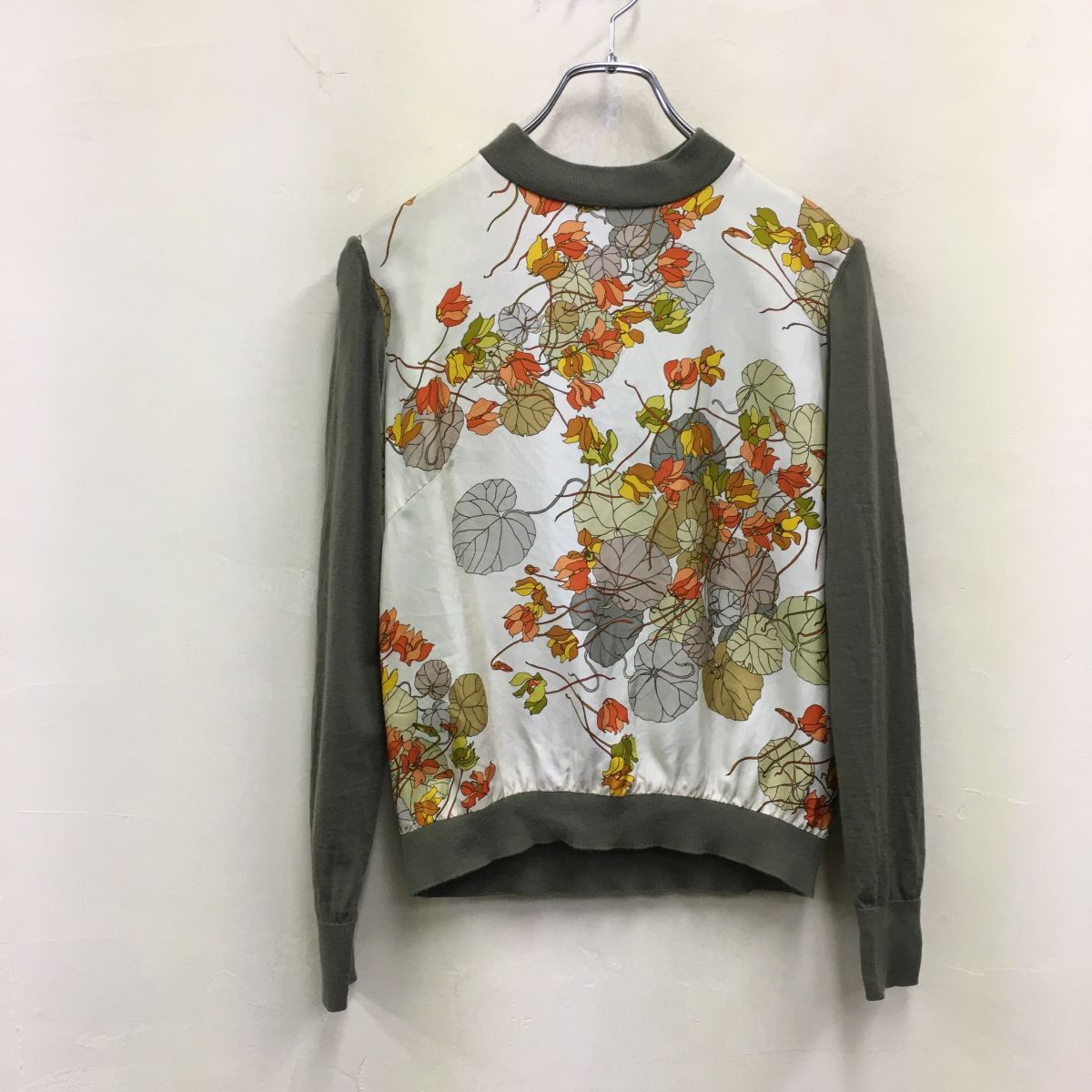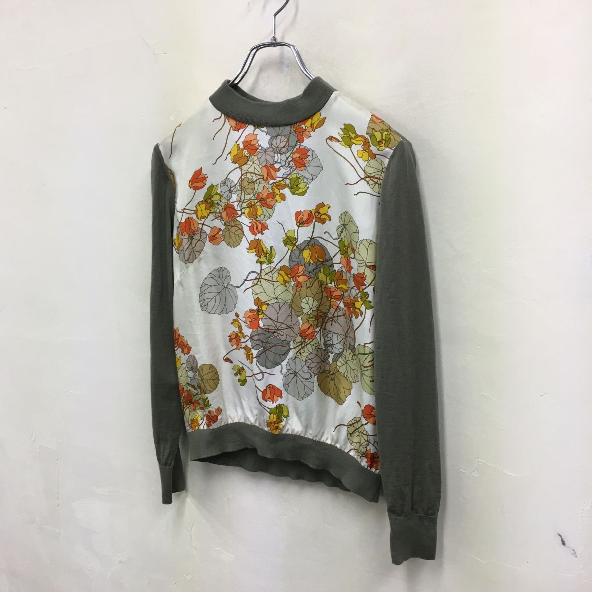 2K1956-G◆ cml MAGLIERIA DI LUSSO TORINO 異素材コンビニット フラワープリントサテン レトロ バックボタン ◆ size46 カーキ