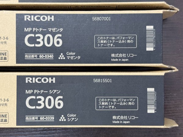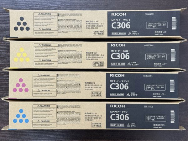| RICOH純正品 RICOH MP Pトナー C306 60-0338 60-0339 60-0340 60-0341 4色セット新品 未使用 | ||
