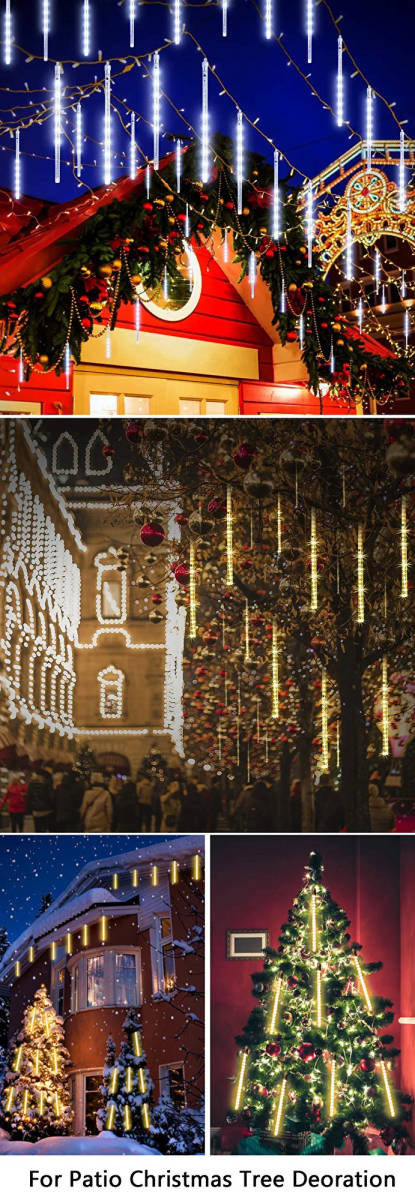 | クリスマス☆LEDイルミネーション スノーフォール50cm つらら 金 新商品です。 チューブの中にLEDを36個ずつ詰め込んだ、鮮やかで美しい氷柱のようなイルミネーションです! 電源を入れるとまるで流星群や雪が降るように光が流れていき、とても幻想的です。 8本のチューブの光の流れるスピードはそれぞれ違いますのでバラバラに発光し、より自然な美しさを演出します。 街路樹、公園、家、お店(店舗)、パーティー会場、クリスマスツリー、ガーデニング(庭)…などなど!装飾・飾り付けに最適! 防水・防塵・耐腐食性に優れており、LEDの性質上消費電力を抑えられます。 また、全て組み立てた状態で発送いたします! あとはコンセントにさしこむだけ! ■カラー:金(シャンパンゴールド、ウォームホワイト、黄色) ■数量:8本 ■チューブ長さ:50cm ■チューブ直径:1cm ■材質:PVC ■チューブ間のケーブルの長さ:35cm ■ケーブル全長:336cm ■LED電球:8本×36LED 総数288LED ■動作電圧:100-240V ■電力:10W ■寿命:60000時間(LEDの理論値) ■防水性能:IP65 他にも色違いのブルー、クールホワイト、 LEDテープ、ローズランプ、ツリーランプ、延長ブラホック、ペンライトなどたくさんの商品を取り扱っておりますのでよろしければご覧ください。 注意事項 ※ACアダプターは防水ではありませんので屋外用のコンセントでご使用ください。 | |||