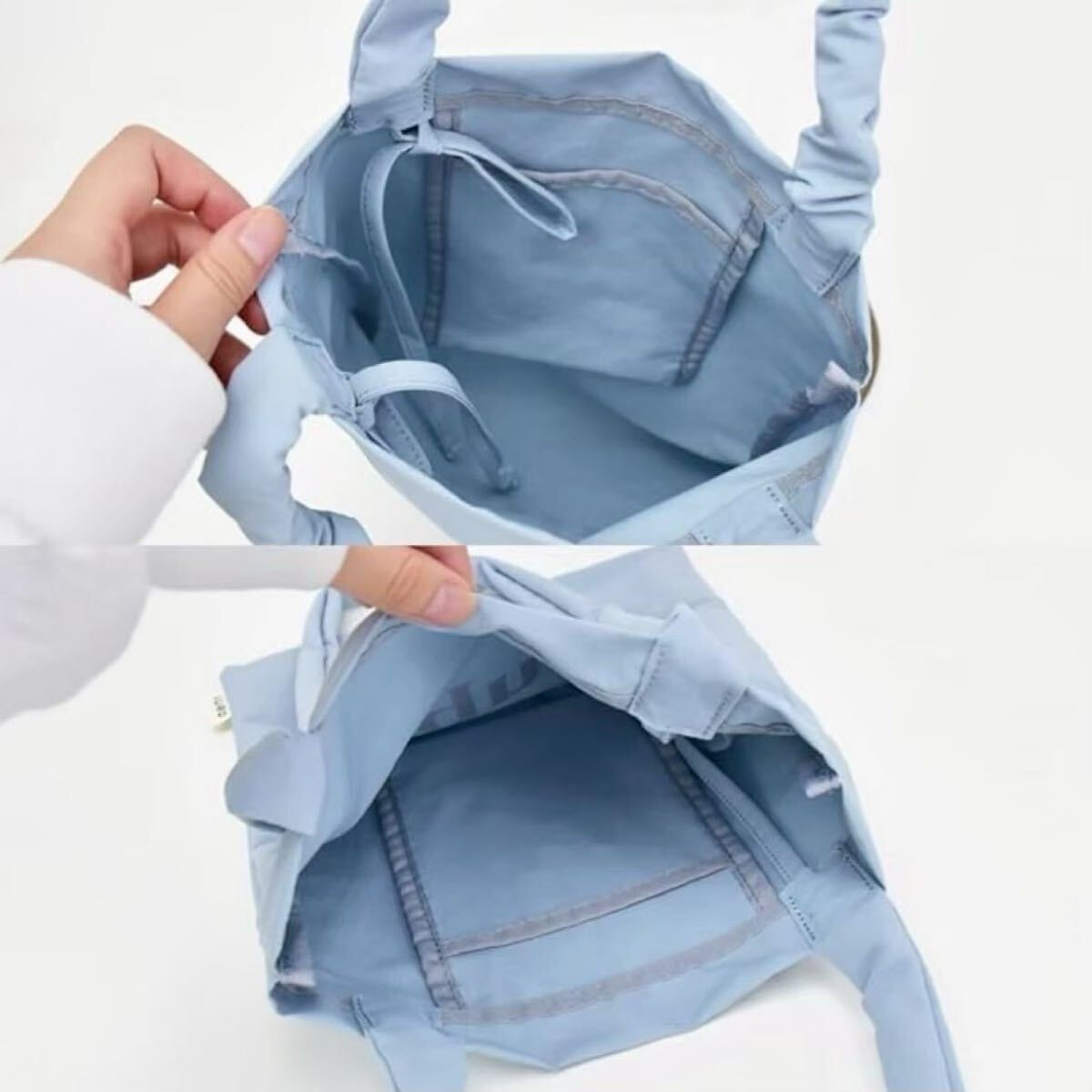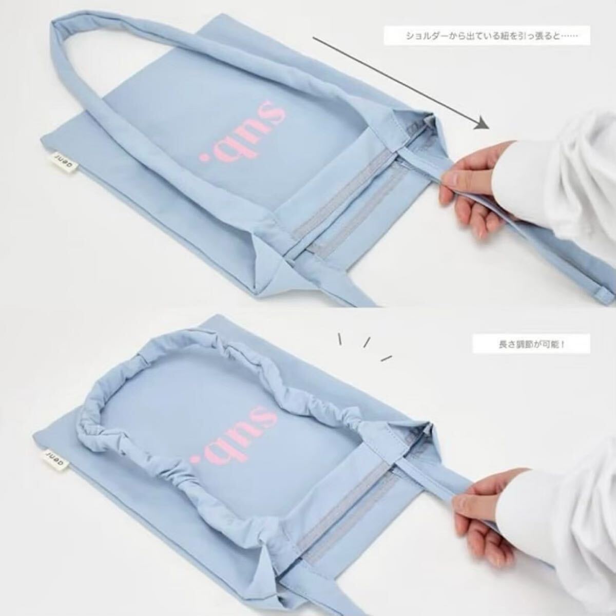 ショルダー部分を絞って長さ調整でき、クシュっとした持ち手がかわいい2way トートバック