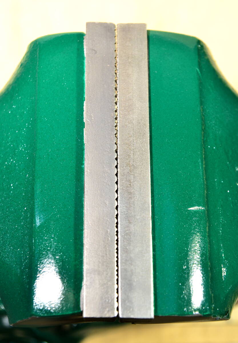 | 新品の頃の輝きに少しでも近づけるよう、リペアさせていただいております。 口金周り及びハンドルの開閉部分については、画像を含め事細かく説明報告致します。 特徴としましては、口巾5インチ角胴リードタイプとしては最大クラスの製品で、口深についても107mmと懐が深く、口開ストッパーの位置が190mmと十分長いのですが、稼働側のスピンドル軸が据え付け側雌ネジから外れる位置が270mmなので、限界口開として説明画像最後、約240mm程迄増長 ※ 可能です。 ハンドル開閉の際、口金同士が密着状態から全開迄、スムーズに開閉作動します。 口金同士の摺合せは、180°上下にひっくり返しローテーション調整しており、口金同士を密着させた際隙間は見られません。 口金面は、ローテーションにより使用頻度が多上部いエッジ部分が、幾らかリフレッシュした感は見られます。 分解清掃後、調整等を行い油性塗料を吹付しました。 塗装につきましては、スチール製品全般の大敵錆防止の一環として施してあるもので、焼付塗装等の本格的な塗装ではありませんので若干剥げやすい点と、少々の塗装ムラ・塗装剥げが見られますところ何卒ご容赦下さい。 ※口開を増長する場合、説明画像3番目(爪楊枝先端)を-ドライバーにてストッパーのビスを外して貰いましたら可能で、角胴部上面240mmの位置に黒色の線で罫書いておきます。 製品情報 KOZ 角胴リードバイス 133 スペックは、すべて実測 口巾:133mm 口開:190mm (※増長:240mm) 口深:108mm 長さ:550mmm 高さ:245mm 横幅:203mm ハンドル長さ:284mm 取り付け穴径:16.4mm 製品重量:30.4kg 出品商品を商品説明・写真にてご判断していただきまして、御入札の方宜しくお願い申し上げます。 |