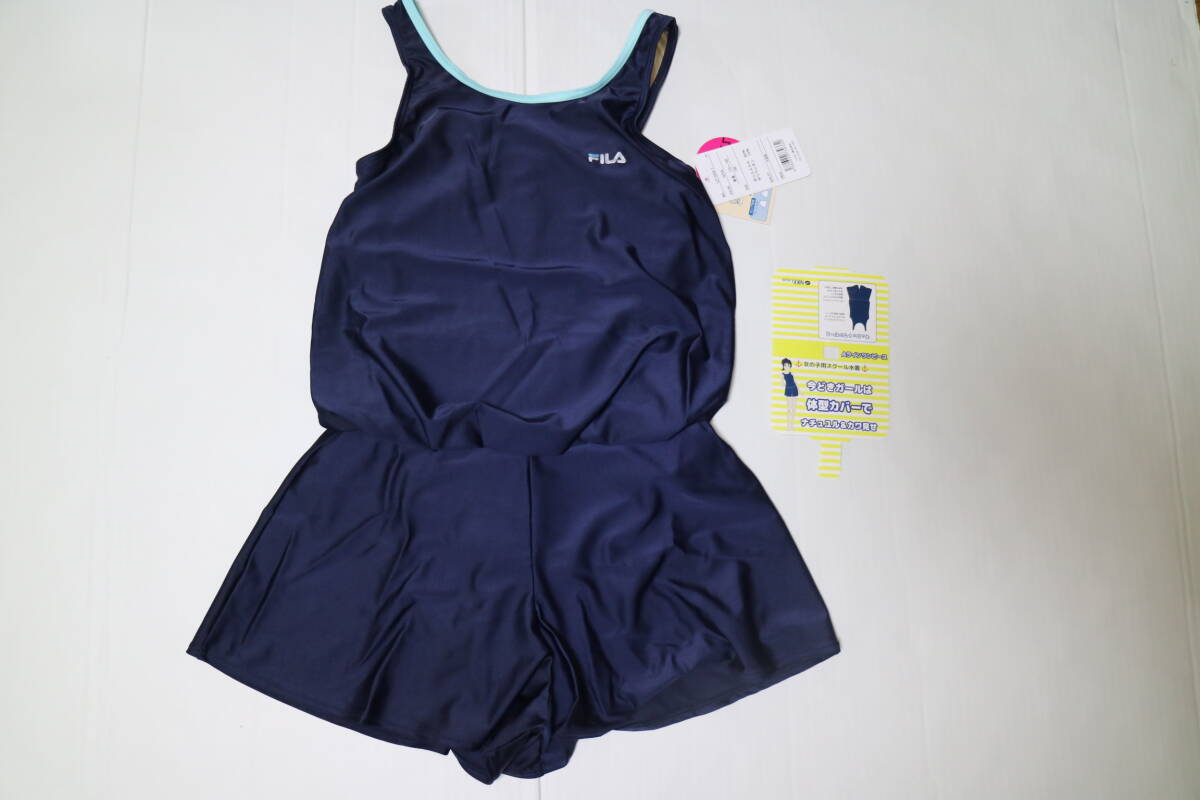 ★未使用品 希少 175cm~185cm対応 180サイズ フィラ 女子 キュロット スカート型 ワンピース スクール水着 紺色×水色★