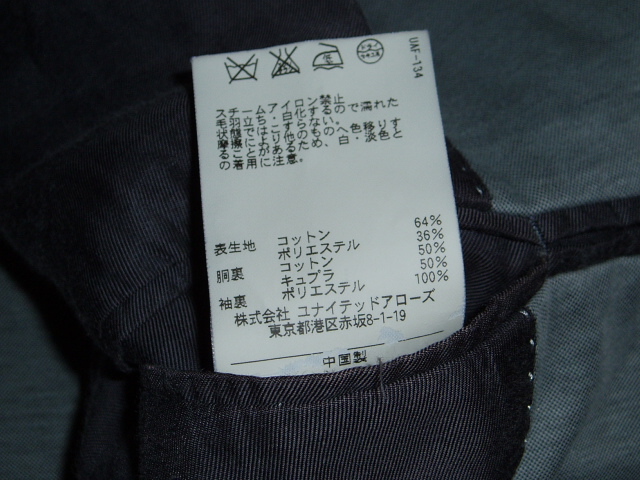 | ユナイテッドアローズ『メランジ織りジャケット』 USEDですが美品です。サイズ表記は46 実寸サイズ /肩幅-43.0cm/身幅-48.5㎝/袖丈- 61.0cm/着丈-70.0cm/ (素人採寸の為、多少の誤差はご容赦下さい。) 素材表地 コットン64%ポリエステル36% (厳選春先『メランジ織りコットンジャージー』生地使用) 袖裏ポリエステル100% | |||