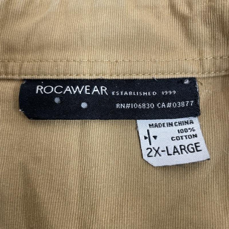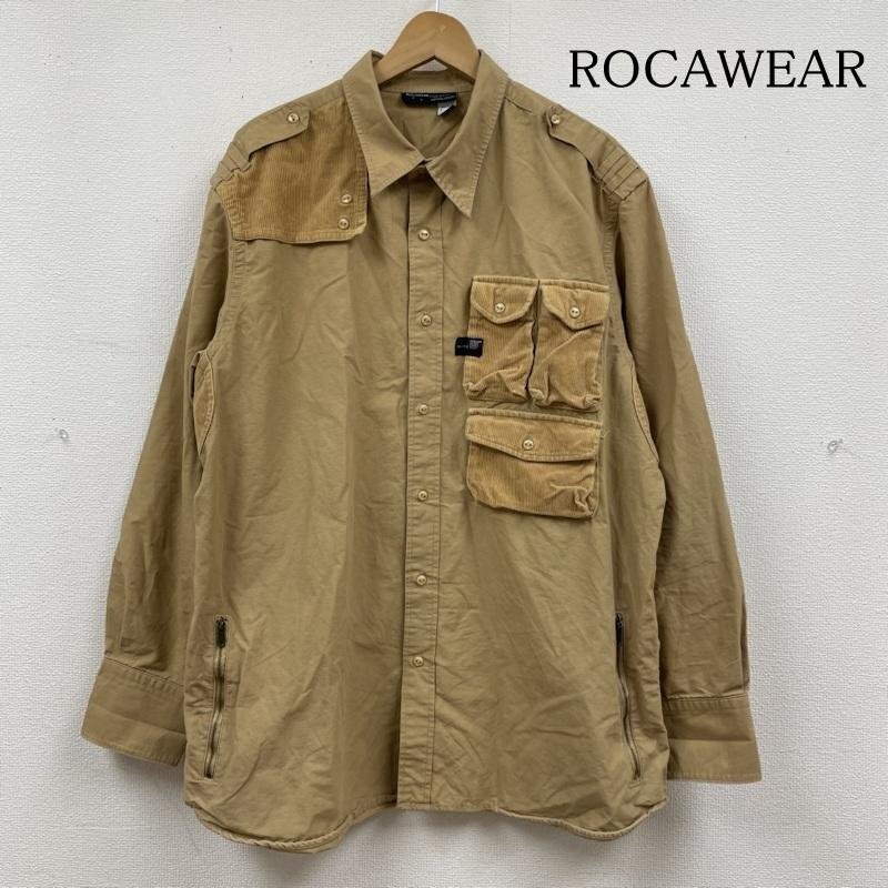 ロカウェア ボタンアップ シャツ 長袖 ワーク シャツ タン 無地 コーデュロイ 切り替え サイズ2XL -