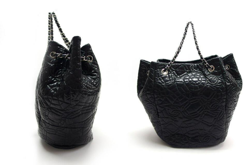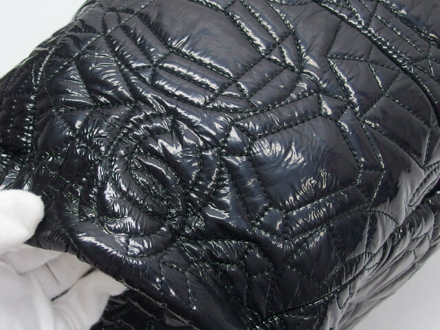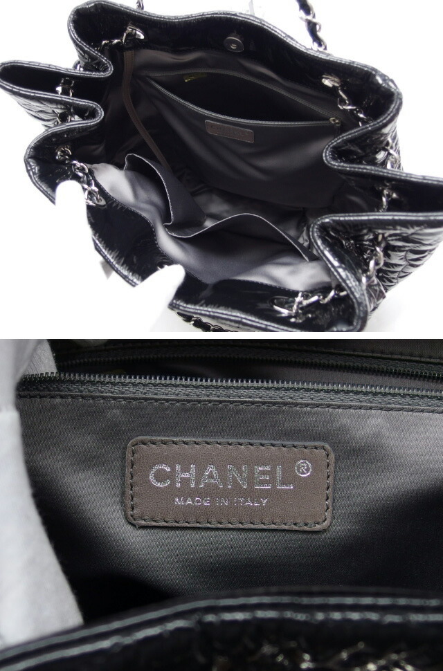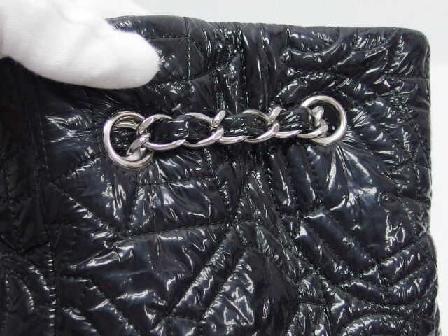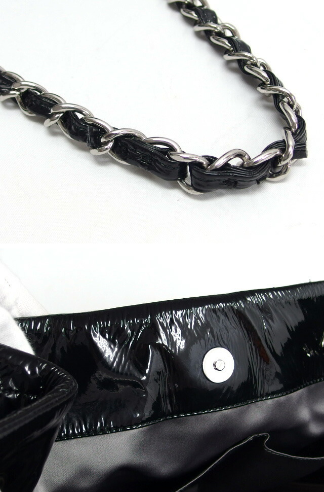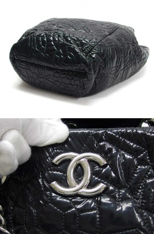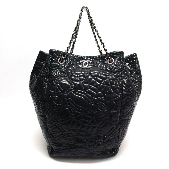| 商品名 | CCステッチ ビニール(ソフトエナメル風) チェーントートバッグ チェーンショルダーバッグ ブラック(黒) シワ加工 マグネット式開閉 シルバー金具 ココマーク 肩掛け レディース A38471 |