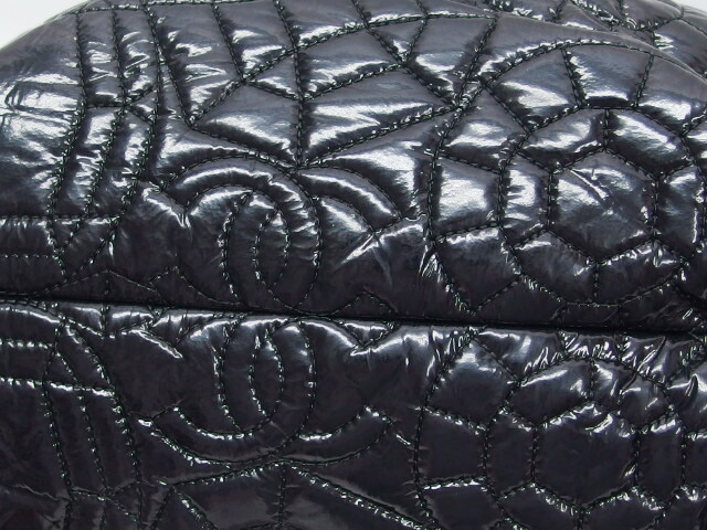 | コメント | シャネルの大きめのソフトエナメル風トートをご紹介致します。黒のビニールを使用した真ん中が幅広い形のトートバッグで、シワ加工された表面にCOCOマークなどのステッチが目を引くデザイン!大きめのサイズですので、収納力は抜群です。デザイン性・実用性のバランスがとれた可愛らしいアイテムです!内ポケット3つ(ファスナーx1、オープンx1、小ポケット(オープン)x1)あります。 |