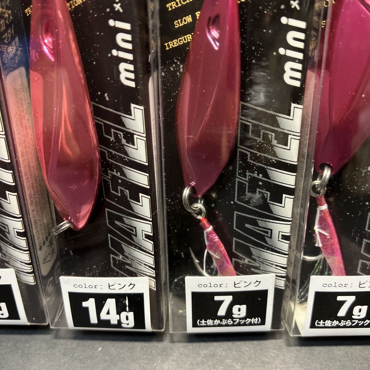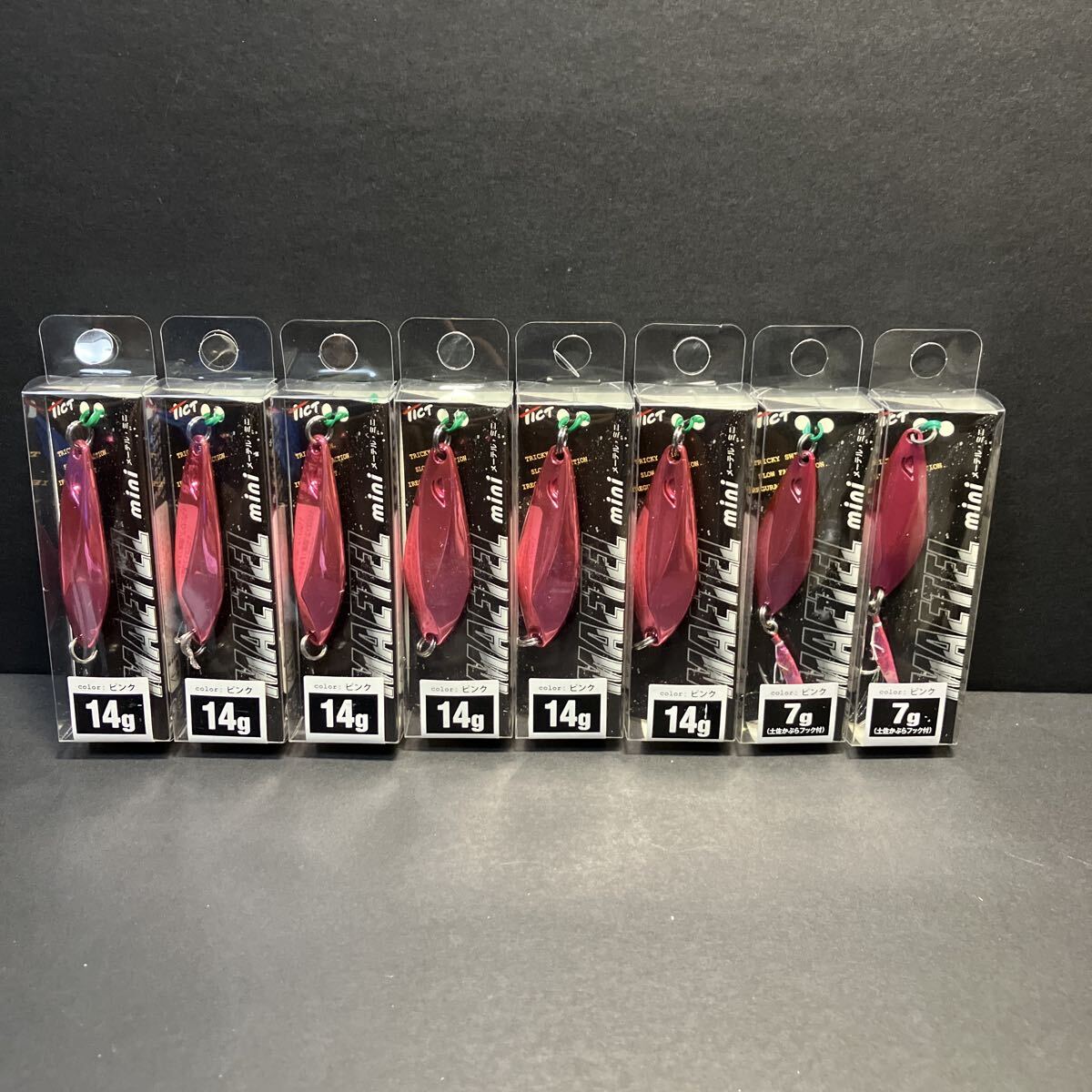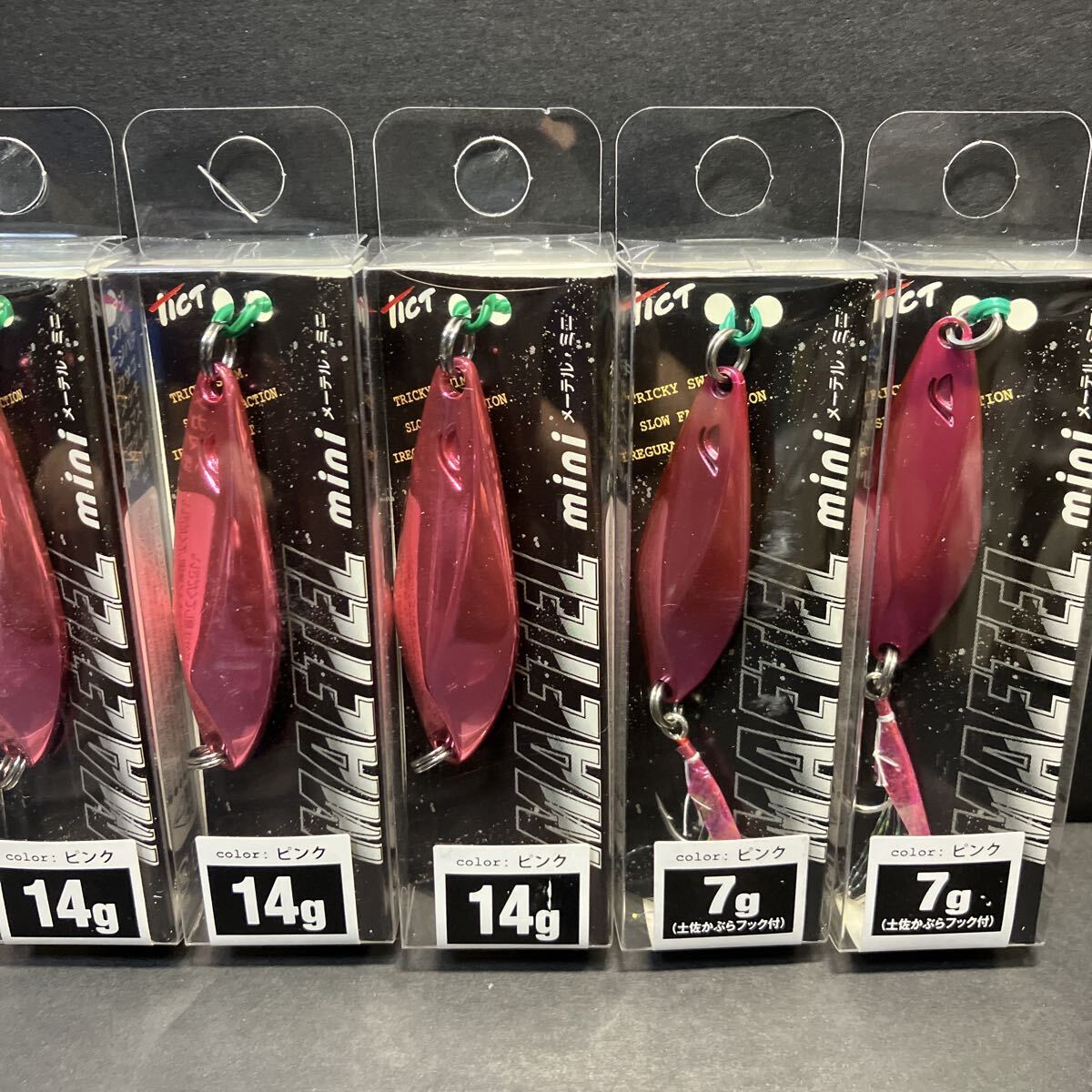 "TICT製 メーテル・ミニ 14g&7g ピンク セット 新品です。 HOOKレスの14gピンク=6個と、土佐カブラ付きシングルHOOKの7gピンク=2個の計6個セットです。 堤防からのアジやメバル・アコウ・カサゴ・真鯛等にいかがでしょうか? カラーがいいのかよく釣れますよ! メタルジグでもなく、スプーンでもないアロイ(合金)ジグで、
